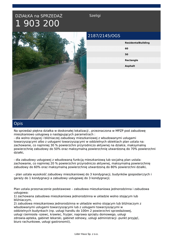 DZIAŁKA na SPRZEDAŻ 2187/2145/OGS Opis