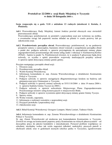 Protokół nr 22/2004 z sesji Rady Miejskiej w Tyczynie w dniu 10