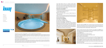 4 Ściany, ścianki Przyczyną spękania okładziny ceramicznej lub w ekstremalnym przypadku odpadnięcia okładziny z płytek ceramicznych jest stosowanie płyt gipsowo-kartonowych jako podłoża pod płytki o ciężarze pow. 15 kg/m2. Aprobata Techniczna dla płyt g-k stwierdza, że jest to wartość graniczna. Stosowanie okładzin cięższych, szczególnie w warunkach podwyższonej wilgotności, skutkuje odspojeniem się kartonu od rdzenia gipsowego. Właściwości płyty cementowej AQUAPANEL®: ekstremalnie mocna i sztywna; pod wpływem wody nie pęcznieje, nie mięknie, nie rozwarstwia się, nie ulega rozpadowi, nie pogarsza swoich właściwości jest odporna na działanie grzybów i pleśni wykazuje wysokie parametry odporności mechanicznej, izolacyjności akustycznej oraz w zakresie ogniochronności. Obróbka i montaż są zbliżone do technologii z użyciem płyt g-k. Płytę cementową można przeciąć zwykłym nożem i złamać. Nie wymaga wcześniejszego nawiercania. Przykręca się ją bezpośrednio do konstrukcji metalowej lub drewnianej. Zastosowania płyty cementowej AQUAPANEL®: wewnątrz obiektów – płyta AQUAPANEL® Indoor na zewnątrz budynków – płyta AQUAPANEL® Outdoor w wewnętrznych systemach podłogowych – płyta AQUAPANEL® Floor. Powszechnie płyty cementowe AQUAPANEL® stosujemy wewnątrz. Produkt ten stanowi idealną okładzinę lekkich konstrukcji szkieletowych w pomieszczeniach mokrych i wilgotnych. Dzięki niemu możemy bezawaryjnie stosować systemy suchej zabudowy w pomieszczeniach o podwyższonej wilgotności, wykorzystując w pełni lekką zabudowę przy wykonywaniu sufitów podwieszanych, ścianek szkieletowych czy różnego typu obudów. Konstrukcja nośna może być zarówno drewniana jak i metalowa, identyczna jak stosowana przy montażu płyt gipsowych. KNAUF Sp. z o.o. ul. Światowa 25 02-229 Warszawa tel. 22/ 572 51 00 fax 22/ 572 51 02 www.knauf.pl www.aquapanel.com PRZEŁOM W SUCHEJ ZABUDOWIE – PŁYTA CEMENTOWA AQUAPANEL® Specjalistyczny materiał płyta cementowa AQUAPANEL® jest odpowiedzią na zapotrzebowanie rynku budowlanego. Powszechne stosowane w budownictwie systemy suchej zabudowy kojarzone z zastosowaniem płyty gipsowo-kartonowej, nie zawsze są stanie sprostać oczekiwaniom inwestora oraz wymaganiom projektanta, który staje przed rozwiązaniem konkretnego problemu. W pomieszczeniach w których poziom wilgotności jest znaczny (kuchnie, łazienki, piwnice, ogrody zimowe, sauny, baseny w hotelach, restauracje, obiekty sportowe, centra rozrywki), wymagane jest użycie materiałów specjalistycznych. Natężenie wilgotności, jej długotrwałe działanie oraz negatywny wpływ warunków zewnętrznych, np. temperatury, prowadzi do destrukcji wielu materiałów budowlanych: uszkodzenia tynku zewnętrznego, zawilgocenia ściany osłonowej budynku, utraty parametrów izolacyjności cieplnej i akustycznej, zagrzybienia i pokrycia pleśnią ściany i jej okładziny, popękania okładziny (np. płytek ceramicznych), odklejenia się okładziny czy uszkodzenia fug. 54 IAinfoarchitekta.pl Typowe miejsca zastosowań płyty AQUAPANEL® Indoor to: łazienki, kuchnie, piwnice, sauny, baseny, garaże, kominki. Płyta okładzinowana jest najczęściej płytkami ceramicznymi, można jednak stosować gładzie cementowe lub cementowo-wapienne oraz tapetowanie tapetą z włókna szklanego. Na bazie płyty cementowej mogą być również wykonywane inne nietypowe elementy narażone na duże obciążenia mechaniczne i jednocześnie wilgocią – jak blaty robocze w kuchni. Obszarem coraz większego wykorzystywania systemów suchej zabudowy są systemy podłogowe. Płyta AQUAPANEL® Floor to produkt specjalnie stworzony do wykonania takiej podłogi. Jest to płyta o wymiarze 600 x 600 mm i grubości 22 mm. Dodatkowo może być aplikowana 10 mm warstwą wełny mineralnej, o ciężarze 34 kg/m2. Zastosowania AQUAPANEL® Floor : idealna do modernizacji podłóg, zwłaszcza w obiektach remontowanych w miejscach szczególnie narażonych na działanie wilgoci, takich jak wejścia czy łazienki doskonale sprawdza się na ogrzewaniu podłogowym Przełom w budownictwie stanowi możliwość wykorzystania ogromnych zalet suchej zabudowy do budowy ścian zewnętrznych i elewacji, co przed wprowadzeniem na rynek płyty cementowej wydawało się nie do pomyślenia. AQUAPANEL® Outdoor to bardzo dobra alternatywa dla konwencjonalnych materiałów, stosowanych na zewnątrz. Materiał budowlany jakim jest płyta cementowa AQUAPANEL® ze względu na swoje wszechstronne zastosowanie i doskonałe właściwości techniczne jest w stanie zaspokoić najbardziej wyszukane oczekiwania projektanta, inwestora, wykonawcy wreszcie użytkownika, zapewniając wieloletnie bezawaryjne korzystanie z obiektów. Więcej informacji uzyskacie Państwo u naszych doradców technicznych i na stronach www.knauf.pl. Zapraszamy do współpracy. prezentacja firmy również w tomie MATERIAŁY BUDOWLANE/ ELEWACJE I FASADY 2 ele wacje i fasady Ograniczenie występowania mostków termicznych – optymalny wariant konstrukcji Ściany zewnętrzne w konstrukcji suchej zabudowy – kompletne systemy Konstrukcja ściany zewnętrznej niewentylowanej montowanej do stropów (od czoła płyt stropowych): podwójny szkielet Ściana zewnętrzna odsunięta od stropów to specjalny wariant konstrukcyjny stosowany wszędzie tam, gdzie liczy się jak najkorzystniejsza charakterystyka cieplna budynku. Ten rodzaj konstrukcji to idealny wybór np. dla budynków biurowych i mieszkalnych w droższych lokalizacjach miejskich. Poprzez wysunięcie izolacji przed stropy stworzono optymalny wariant rozwiązania, pozwalający zminimalizować występowanie mostków termicznych. Zimą zapewnia to mniejsze straty ciepła, a latem bardziej komfortowy klimat pomieszczeń. KNAUF Sp. z o.o. ul. Światowa 25 02-229 Warszawa Optymalny komfort klimatyczny wnętrza tel. 22/ 572 51 00 fax 22/ 572 51 02 Konstrukcja wentylowana — 