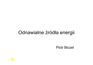 Odnawialne źródła energii Piotr Biczel do zabrania • gniazdko • szlam od AKądzielawy plan wykładu • • • • • • • Źródła odnawialne Elektrownie słoneczne Elektrownie wodne Elektrownie biogazowe Elektrownie wiatrowe Współspalanie Integracja OZE z systemem elektroenergetycznym • Podsumowanie Odnawialne źródła energii • takie pierwotne nośniki energii, które się samoistnie odtwarzają w rozsądnym przedziale czasu • urządzenia do przekształcania odnawialnych nośników pierwotnych na energię odnawialną Odnawialne źródła energii 20% energii z OZE w 2020 – wg EC BREC / IEO • Rodzaj OZE Energia [PJ] – Energetyka słoneczna 16 – Energetyka wiatrowa 63 – Energetyka wodna 11 – Biomasa, w tym: 382 – Plantacje energetyczne 135 – Biogaz 98 – Biopaliwa 59 – Energetyka geotermalna 12 – OZE ogółem 484 Tempo wzrostu 33% 35% 3% 5% 42% 30% 21% 12% 7% 31/12/90 04:00 12/12/90 23:00 24/11/90 18:00 06/11/90 13:00 19/10/90 08:00 01/10/90 03:00 12/09/90 22:00 25/08/90 17:00 07/08/90 12:00 20/07/90 07:00 02/07/90 02:00 13/06/90 21:00 26/05/90 16:00 08/05/90 11:00 20/04/90 06:00 02/04/90 01:00 14/03/90 20:00 24/02/90 15:00 06/02/90 10:00 19/01/90 05:00 01/01/90 00:00 Nasłonecznienie [W/m2] Elektrownie słoneczne 1000 900 800 700 600 500 400 300 200 100 0 Elektrownie słoneczne Elektrownie słoneczne Elektrownie wodne • Przed wojną elektrownie wodne były podstawowym źródłem energii elektrycznej w Polsce – 8000 • W PRL - demontaŜ i świadomie niszczenie jako przeŜytek systemu kapitalistycznego. • W 1954 roku – 6330 czynnych EW – 800 nieczynnych • MoŜna było uruchomić ponownie przynajmniej – 700 elektrowni wodnych • Gdy w latach 80. przeprowadzono ogólnopolską inwentaryzację istniejących EW – 650 obiektów Elektrownie wodne Elektrownie wodne Elektrownie biogazowe • biogaz wysypiskowy • biogaz z oczyszczalni ścieków • biogaz rolniczy • biogaz ze zgazowania biomasy stałej Elektrownie biogazowe • agregaty prądotwórcze • turbiny gazowe Elektrownie biogazowe Eko Dolina Elektrownie wiatrowe Elektrownie wiatrowe Elektrownie wiatrowe Elektrownie wiatrowe Współspalanie • • najprostszy i najtańszy sposób zwiększenia produkcji energii elektrycznej z paliw odnawialnych. Zalety współspalania: – – – – • prawie natychmiastowe wykorzystanie biomasy w duŜej skali (duŜe kotły), proces spalania jest stabilizowany przez spalanie węgla, niŜsze emisje SO2, NOx, CO2 (w części odnoszącej się do paliw kopalnych), elastyczność kotła i brak zaleŜności produkcji energii elektrycznej od dostępności biomasy (problemy logistyczne) Wady współspalania: – trudności z dostawą i przygotowaniem (suszenie, rozdrobnienie) wystarczającej ilości biomasy oraz jej cena, – ograniczenie wydajności i sprawności kotła, – efekty uboczne współspalania związane ze składem substancji mineralnej biomasy. Współspalanie • Sposób podawania biomasy i paliwa do komory paleniskowej kotła energetycznego • współspalanie bezpośrednie: – mieszanie biomasy z węglem przed układem dozowania węgla do kotła (młynami), – niezaleŜne przygotowanie biomasy — rozdrobnienie i spalanie na ruszcie pod kotłem – dozowanie do palników ewentualnie nad palnikami węglowymi niezaleŜnym strumieniem • współspalanie pośrednie: – przedpalenisko — do komory paleniskowej kotła wnoszone jest ciepło spalin ze spalania biomasy, – wstępne zgazowanie biomasy — do komory paleniskowej wprowadzany jest wilgotny gaz palny. Współspalanie Integracja OZE z SEE Integracja OZE z SEE • konieczność utrzymywania gorącej rezerwy • dodatkowa emisja CO2 • spadek jakości energii • magazynowanie energii Podsumowanie • Technicznie elektrownie oparte o OZE są juŜ dość dobrze opanowane • Niestety jest problem z szerokim wprowadzeniem ich do współczesnego SEE • Wymaga to inwestycji w przesył i magazynowanie energii • Pozostaje pytanie kto ma za to zapłacić Literatura • Lubośny Z.: Elektrownie wiatrowe w systemie elektroenergetycznym. WNT, Warszawa 2006 • Rodacki T., Kandyba A.: Przetwarzanie energii w elektrowniach słonecznych. Wydawnictwo Politechniki Śląskiej. Gliwice, 2000. • Kamieński Z.: Polityka i mechanizmy wsparcia w zakresie wykorzystania energii biomasy i biogazu. Ministerstwo Gospodarki, Warszawa, 30 maja 2007 • Towarzystwo Rozwoju Małych Elektrowni Wodnych – • Eko Dolina – • www.ekodolina.pl EW Niedzica – • www.trmew.pl www.zzw-niedzica.com.pl APS Energia – www.apsenergia.pl pytania? ja mam pytanie… • Dlaczego nic nie mówiłem o ogniwach paliwowych? Dziękuję za uwagę