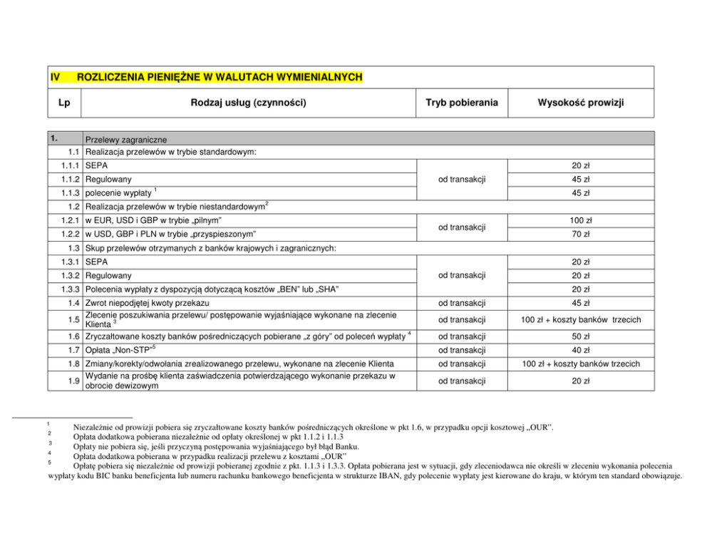 IV ROZLICZENIA PIENIĘŻNE W WALUTACH WYMIENIALNYCH Lp