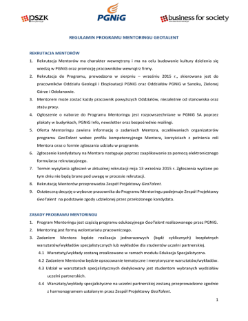 REGULAMIN PROGRAMU MENTORINGU GEOTALENT