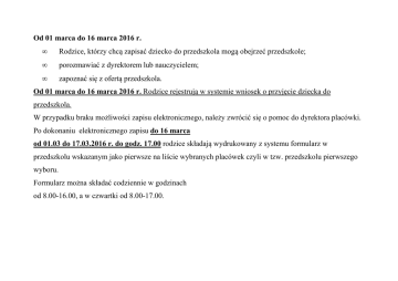 Od 01 marca do 16 marca 2016 r. • Rodzice, którzy chcą zapisać