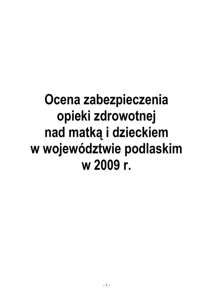 Ocena zabezpieczenia opieki zdrowotnej nad matką i dzieckiem w