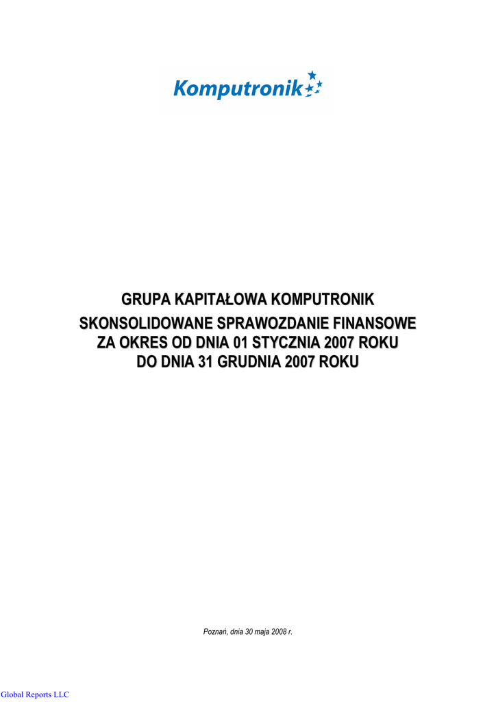 Skonsolidowane sprawozdanie finansowe Grupy obejmuje okres 12 miesięcy zakończony 31.12.2007 roku oraz zawiera