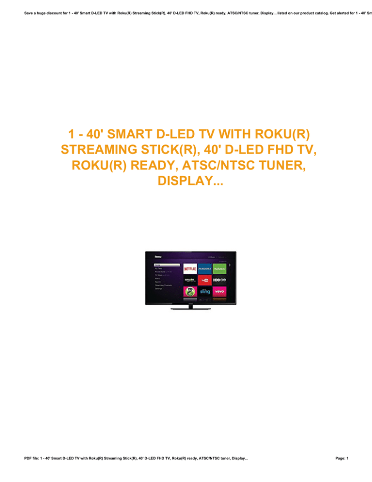 40` smart d-led tv with roku(r) streaming stick(r), 40` d