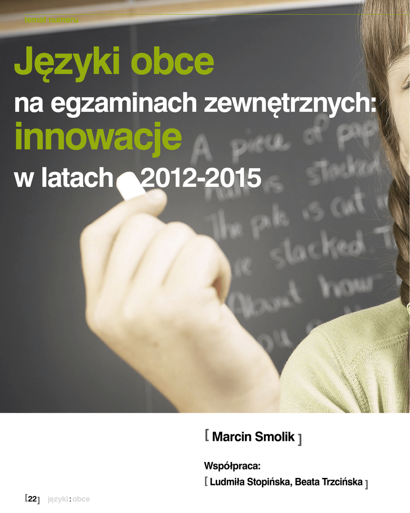 temat numeru Języki obce na egzaminach zewnętrznych: innowacje w latach 2012-2015 [ Marcin Smolik ] Współpraca: [ Ludmiła Stopińska, Beata Trzcińska ] [ 22 ] temat numeru Jak zauważa Fullan (1991), wprowadzenie zmiany zakrojonej na wielką skalę nigdy się nie powiedzie, jeżeli przyczyny tego działania pozostaną znane jedynie wąskiej grupie specjalistów, a nie szerokiemu gronu osób, na których barki ono spada. Mając powyższe na względzie, artykuł stawia sobie za cel nakreślenie głównych kierunków innowacji w systemie egzaminów zewnętrznych z języków obcych nowożytnych, które zostaną wprowadzone w latach 2012-2015, oraz przedstawienie najważniejszych przesłanek leżących u ich podstaw. [ 23 ] temat numeru Podstawa programowa kształcenia ogólnego a system egzaminów zewnętrznych W odróżnieniu od zwykłej zmiany innowacja – jak zauważa Wall (1996, 2005) – jest działaniem zamierzonym, zaplanowanym i nakierowanym na ulepszenie systemu, w którym jest wprowadzana. Innowacja powinna być zatem postrzegana nie jako odosobnione, niepowiązane z niczym wydarzenie, lecz jako długotrwały proces, którego uczestnicy muszą na swój użytek określić jego znaczenie dla wszystkich zaangażowanych weń stron (Fullan 1991). W świetle powyższej charakterystyki nie ulega wątpliwości, że wprowadzenie podstawy programowej kształcenia ogólnego (MEN 2008) należy uznać za innowację w polskim systemie edukacji, jako że: proces wprowadzenia dokumentu w życie poprzedziły kilkuletnie prace przygotowawcze i konsultacyjne; samo wprowadzenie zostało rozłożone w czasie, rozpoczęło się od klas pierwszych szkół podstawowych i gimnazjalnych w 2009 r., a zakończy w klasach czwartych technikum w 2015 r.; wprowadzeniu dokumentu przyświecała – przynajmniej w założeniu – idea ulepszenia systemu edukacji. Dzięki połączeniu założeń zawartych w dwóch odrębnych rozporządzeniach MEN (dotyczących wcześniejszej podstawy programowej oraz standardów wymagań egzaminacyjnych) podstawa programowa kształcenia ogólnego (MEN 2008) wprowadziła porządek w dokumentacji regulującej proces uczenia się i nauczania. Doprowadziła również do integracji szeroko rozumianego programu nauczania, samego procesu nauczania/ uczenia się i procesu oceniania (ang. assessment), w tym systemu egzaminów zewnętrznych, co – jak podkreślają Darling-Hammond i McCloskey (2008) – jest charakterystyczną cechą praktycznie wszystkich systemów edukacji w krajach osiągających najwyższe wyniki w badaniach międzynarodowych (PISA, PIRLS). Z punktu widzenia osoby zajmującej się pomiarem kluczowym aspektem innowacyjności podstawy programowej z 2008 r. jest to, że wymagania ogólne i szczegółowe określone w dokumencie dla poszczególnych przedmiotów szkolnych i etapów kształcenia wyznaczają jednocześnie dziedzinę, która może być przedmiotem pomiaru na egzaminach zewnętrznych. Fakt ten stanowił i nadal stanowi przyczynek do krytycznego spojrzenia na system egzaminów zewnętrznych i, w przypadku zaobserwowania [ 24 ] braków, niedociągnięć, niezgodności z podstawą programową – wprowadzenia w nim niezbędnych korekt. Konieczność dostosowania egzaminów do nowej rzeczywistości ze względów merytorycznych daje też możliwość podjęcia pewnych decyzji z zakresu polityki oświatowej, co nie jest bez znaczenia. Niezależnie jednak od tego, czy u podłoża wprowadzanych innowacji w systemie egzaminów zewnętrznych leżą powody merytoryczne, czy szeroko rozumiane powody polityczne, niezmiennym pozostaje założenie, że innowacja musi prowadzić do ulepszenia systemu. Innowacja powinna mieć jak najbardziej korzystne (pozytywne) oddziaływanie (ang. impact) na wszystkich interesariuszy procesu testowania, co pociąga za sobą konieczność wczesnego identyfikowania i minimalizowania ewentualnego oddziaływania niekorzystnego oraz – po wejściu egzaminu w fazę operacyjną – monitorowania w powyższym zakresie (Bachman i Palmer 2010; Cheng i Watanabe 2004; Niemierko 2006). W przypadku niektórych przedmiotów, np. matematyki, biologii, historii, zakres innowacji w systemie egzaminów zewnętrznych będzie – można się spodziewać – dosyć znaczny ze względu na fakt, że wymagania podstawy programowej z 2008 r. różnią się zasadniczo od standardów wymagań egzaminacyjnych (MEN 2003, 2007). W przypadku języków obcych nowożytnych różnice pomiędzy wymaganiami określonymi w podstawie programowej z 2008 r. a standardami wymagań egzaminacyjnych nie są aż tak znaczne. Tym niemniej wprowadzenie podstawy programowej kształcenia ogólnego w zakresie języków obcych z jednej strony wymusiło dość istotne zmiany (np. wprowadzenie od roku szkolnego 2011/2012 zestawów zadań na dwóch poziomach w trzeciej części egzaminu gimnazjalnego, sprawdzających spełnienie wymagań określonych w podstawie programowej dla poziomów III.0 i III.1), z drugiej strony nadal daje możliwość rewizji obecnych egzaminów (AERA, APA, NCME 2007), chociażby po to, aby uwzględnić w nich osiągnięcia naukowe i praktyczne ostatnich lat, w tym przede wszystkim te wynikające z badań poświęconych samym egzaminom (np. Lewkowicz i Zawadowska-Kittel 2008, 2011; Poszytek 2008; Smolik 2006, 2008). Takie dziedziny, jak psycholingwistyka, językoznawstwo stosowane, pomiar edukacyjny rozwijają się dynamicznie, co powoduje wręcz konieczność dostosowywania egzaminów do najnowszego stanu wiedzy. Zalecenie takie zostało jasno określone temat numeru w Standardach dla testów stosowanych w psychologii i pedagogice (AERA, APA, NCME 2007:94): Standard 3.25. Test powinien zostać poprawiony lub zrewidowany wtedy, kiedy pojawią się nowe dane, istotne zmiany w reprezentowanej przez test dziedzinie czy nowe warunki stosowania testu, które mogą obniżyć trafność interpretacji wyników testowych. Prace nad dostosowywaniem systemu egzaminów zewnętr
