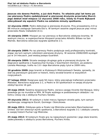 Pięć lat od debiutu Pedro w Barcelonie