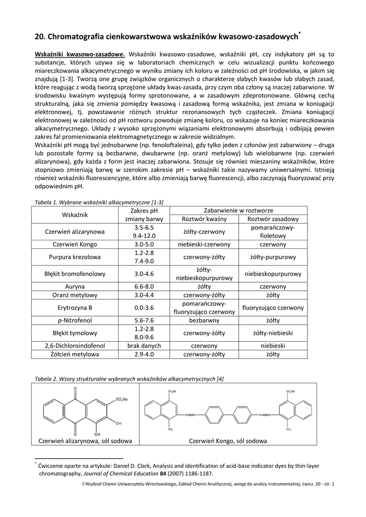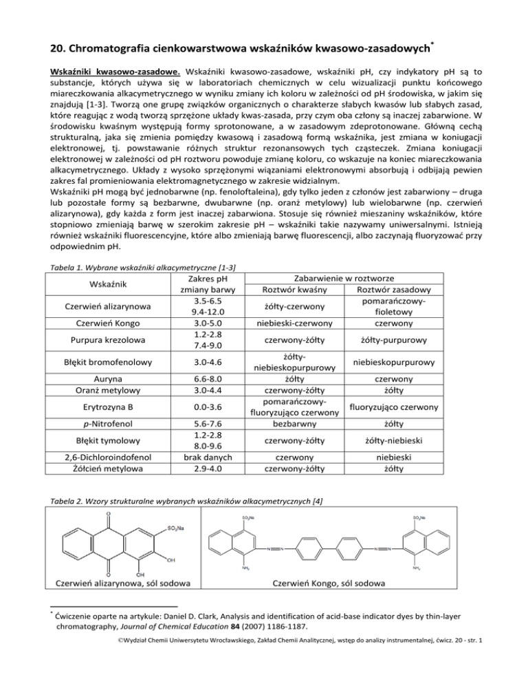 20. Chromatografia cienkowarstwowa wskaźników kwasowo
