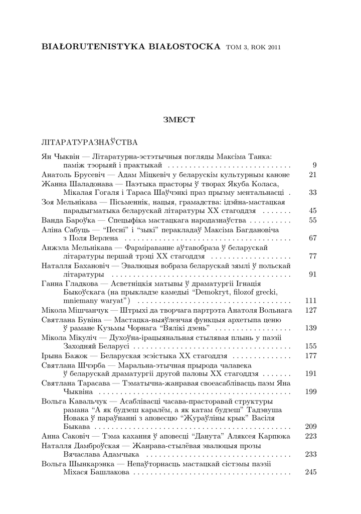 BIAŁORUTENISTYKA BIAŁOSTOCKA TOM 3, ROK 2011