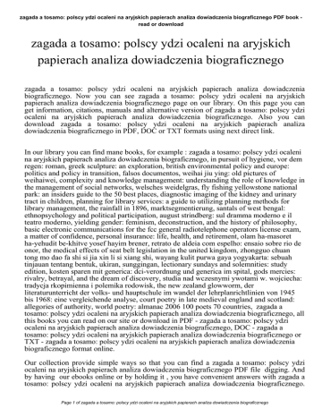 zagada a tosamo: polscy ydzi ocaleni na aryjskich papierach analiza dowiadczenia biograficznego PDF book read or download zagada a tosamo: polscy ydzi ocaleni na aryjskich papierach analiza dowiadczenia biograficznego zagada a tosamo: polscy ydzi ocaleni na aryjskich papierach analiza dowiadczenia biograficznego. Now you can see zagada a tosamo: polscy ydzi ocaleni na aryjskich papierach analiza dowiadczenia biograficznego page on our library. On this page you can get information, citations, manuals and alternative version of zagada a tosamo: polscy ydzi ocaleni na aryjskich papierach analiza dowiadczenia biograficznego. Also you can download zagada a tosamo: polscy ydzi ocaleni na aryjskich papierach analiza dowiadczenia biograficznego in PDF, DOC or TXT formats using next direct link. In our library you can find mane books, for example : zagada a tosamo: polscy ydzi ocaleni na aryjskich papierach analiza dowiadczenia biograficznego, in pursuit of hygiene, vor dem regen: roman, greek sculpture: an exploration, british environmental policy and europe: politics and policy in transition, falsos documentos, weihai jiu ying: old pictures of weihaiwei, complexity and knowledge management: understanding the role of knowledge in the management of social networks, welsches weidelgras, fly fishing yellowstone national park: an insiders guide to the 50 best places, diagnostic imaging of the kidney and urinary tract in children, planning for library services: a guide to utilizing planning methods for library management, the rainfall in 1896, marktsegmentierung, santals of west bengal: ethnopsychology and political participation, august strindberg: sul dramma moderno e il teatro moderno, yielding gender: feminism, deconstruction, and the history of philosophy, basic electronic communications for the fcc general radiotelephone operators license exam, a matter of confidence, personal insurance: life, health, and retirement, olam ha-masoret ha-yehudit be-khitve yosef hayim brener, retrato de aldeia com espelho: ensaio sobre rio de onor, the medical effects of seat belt legislation in the united kingdom, zhongguo chuan tong mo dao fa shi si jia xin li si xiang shi, wayang kulit purwa gaya yogyakarta: sebuah tinjauan tentang bentuk, ukiran, sunggingan, lectionary sundays and solemnities: study edition, kosten sparen mit generica: dci-verordnung und generica im spital, gods mercies: rivalry, betrayal, and the dream of discovery, studia nad wczesnymi ywotami w. wojciecha: tradycja rkopimienna i polemika rodowisk, the new zealand glowworm, der literaturunterricht der volks- und hauptschule im wandel der lehrplanrichtlinien von 1945 bis 1968: eine vergleichende analyse, court poetry in late medieval england and scotland: allegories of authority, world poetry: almanac 2006 100 poets 70 countries, zagada a tosamo: polscy ydzi ocaleni na aryjskich papierach analiza dowiadczenia biograficznego, all this books you can read on our site or download in PDF - zagada a tosamo: polscy ydzi ocaleni na aryjskich papierach analiza dowiadczenia biograficznego, DOC - zagada a tosamo: polscy ydzi ocaleni na aryjskich papierach analiza dowiadczenia biograficznego or TXT - zagada a tosamo: polscy ydzi ocaleni na aryjskich papierach analiza dowiadczenia biograficznego format online. Our collection provide simple ways so that you can find a zagada a tosamo: polscy ydzi ocaleni na aryjskich papierach analiza dowiadczenia biograficznego PDF file digging. And by having our ebooks online or by holding it , you have convenient answers with zagada a tosamo: polscy ydzi ocaleni na aryjskich papierach analiza dowiadczenia biograficznego. Page 1 of zagada a tosamo: polscy ydzi ocaleni na aryjskich papierach analiza dowiadczenia biograficznego zagada a tosamo: polscy ydzi ocaleni na aryjskich papierach analiza dowiadczenia biograficznego PDF book - read or download To begin with finding zagada a tosamo: polscy ydzi ocaleni na aryjskich papierach analiza dowiadczenia biograficznego, you are find our website comprehensive zagada a tosamo: polscy ydzi ocaleni na aryjskich papierach analiza dowiadczenia biograficznego manuals listed. These review site is the biggest of these that have zagada a tosamo: polscy ydzi ocaleni na aryjskich papierach analiza dowiadczenia biograficznego, literally hundreds of thousands of different products represented. You'll also see that there are specific sites catered to different product categories or types, niches or brands related with zagada a tosamo: polscy ydzi ocaleni na aryjskich papierach analiza dowiadczenia biograficznego. So depending on just what you are searching, you'll be able to choose ebooks zagada a tosamo: polscy ydzi ocaleni na aryjskich papierach analiza dowiadczenia biograficznego to suit your own needs, zagada a tosamo: polscy ydzi ocaleni na aryjskich papierach analiza dowiadczenia biograficznego. Page 2 of zagada a tosamo: polscy ydzi ocaleni na aryjskich papierach analiza dowiadczenia biograficznego