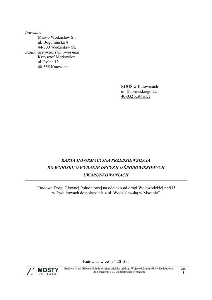 Inwestor: Miasto Wodzisław Śl. ul. Bogumińska 4 44