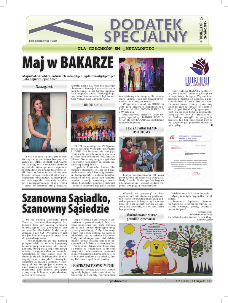 czerwiec 2015 - Spółdzielnia Mieszkaniowa Metalowiec