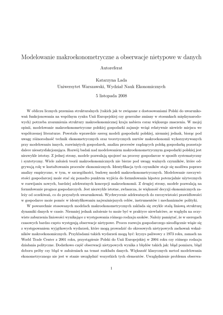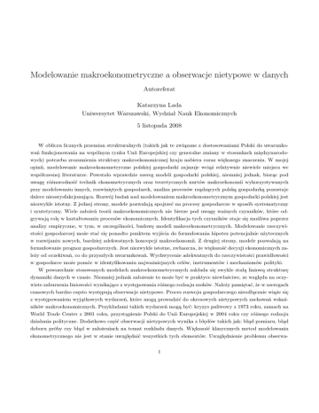 Celem pracy jest zwrócenie uwagi, jak istotną rolę w modelowaniu makroekonometrycznym odgrywają obserwacje nietypowe występujące w danych. Zasadnicza teza pracy jest następująca: