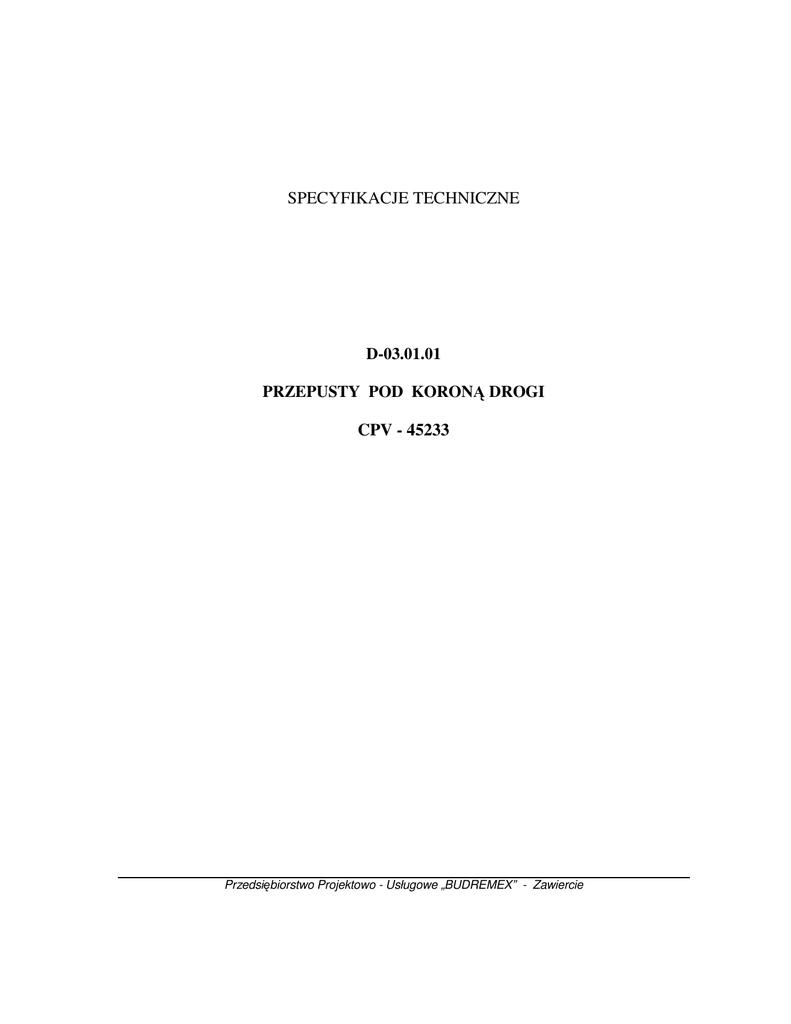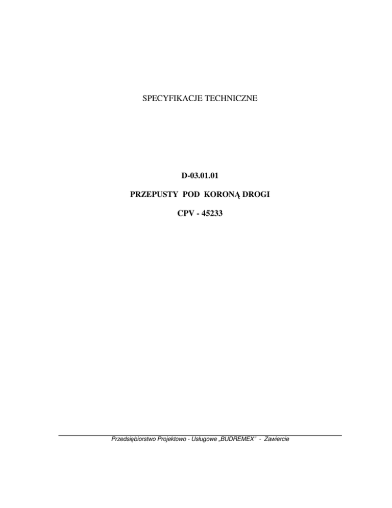 specyfikacje techniczne d-03.01.01 przepusty pod koroną drogi cpv