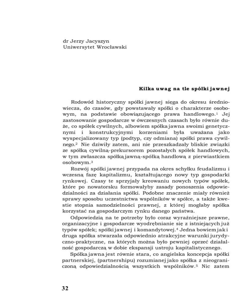 dr Jerzy Jacyszyn Uniwersytet Wrocławski Kilka uwag na tle spółki