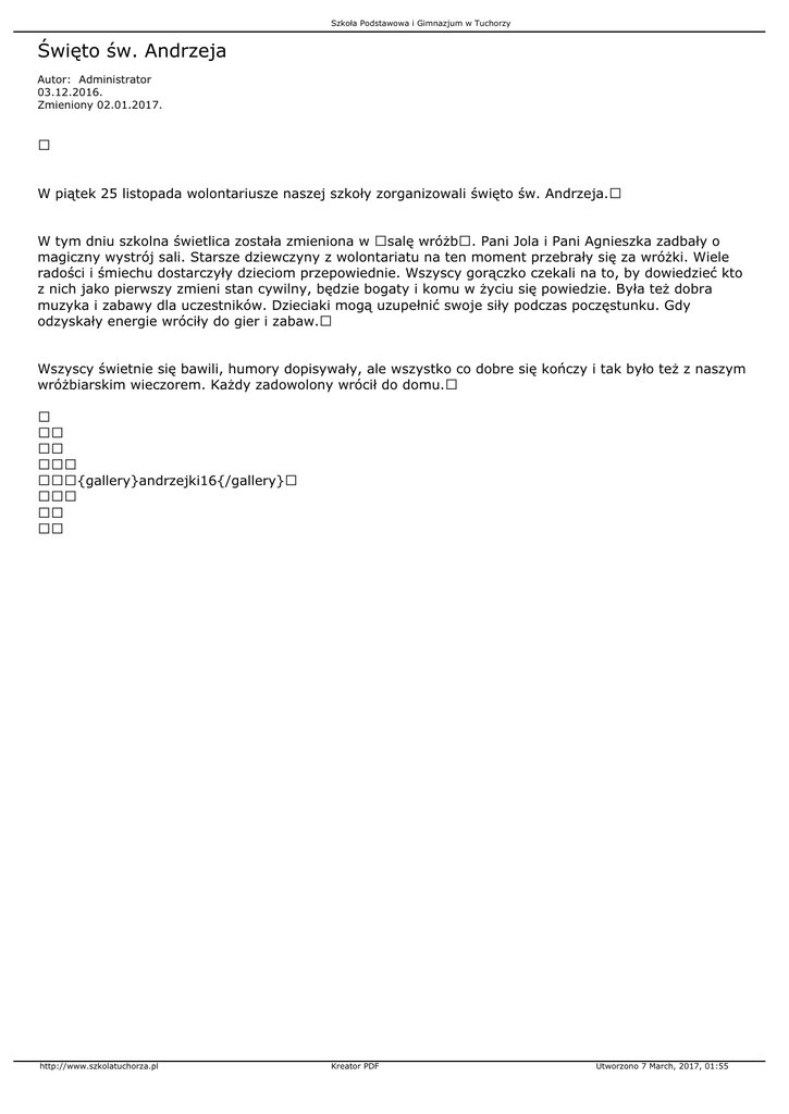 Święto św. Andrzja - Szkoła Podstawowa i Gimnazjum w Tuchorzy