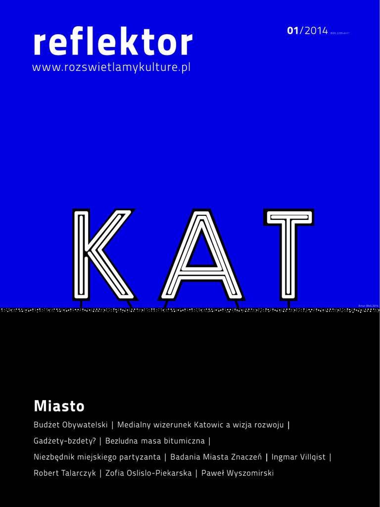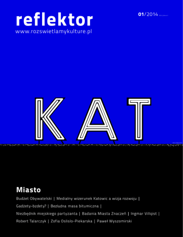 Reflektor – Rozświetlamy Kulturę! www.rozswietlamykulture.pl Wydawca: Redaktor naczelna: Dyrektor artystyczna: Promocja: Korekta: Projekt graficzny i skład: Okładka: Autorzy: | reflektor | miasto | 2 spis treści społecznie 4 6 10 15 21 31 35 37 40 49 51 54 kulturalnie 56 62 66 73 76 81 88 91 | reflektor | miasto | 3 | Marta Zwolińska | Cud nad Rawą nie wydarzy się nigdy Choć stężenie kultury w Reflektorze ostatnich lat może na to nie wskazywać, to społeczne kwestie Katowic i Śląska były iskrą zapalną pisma, gdy zaczynaliśmy je tworzyć w 2010 roku. Z tym większą przyjemnością wracam po latach do regionalnego numeru społecznego. I oddaję w Wasze ręce MIASTO. | reflektor | miasto | 4 - - - Pa- - - - - | reflektor | miasto | 5 | Aleksandra Wycisk | Nowe szaty? Jakie miasto opowiada promocja? Jakie miasto chce opowiedzieć, a jakie chciałaby przemilczeć? Budowanie narracji promocyjnej często wykorzystuje wybrane wątki kulturowe. Projekt „Miasta znaczeń” 1 miał na celu zbadanie m.in. procesu budowania wizerunku miasta z uwzględnieniem sposobu, w jaki działanie to wpływa na (re)interpretację historii, kultury i dziedzictwa danego miasta. W badaniach 2 wzięły udział Lublin, Poznań, Wrocław, Gdańsk i Katowice. | reflektor | miasto | 6 | il. Adam Walkiewicz | Miasto i znaczenia - - - - - - - | reflektor | miasto | 7 Wśród wątków nieopowiedzianych eksperci wskazują na źle prowadzoną narrację o przeszłości regionu, która rozpisana jest na polskość, niemieckość i autonomię. Za dużo jest w niej abstrakcji o macierzy i martyrologii, a za mało codziennego doświadczenia jednostki. - - 4 - Katowice są miastem dla wytrwałych: „trzeba dużo szukać, by znaleźć perełki, wciąż są jednak kojarzone z tradycyjnym krajobrazem hałd i kopalń”; „stereotypem jest miasto górnicze, kojarzy się z festiwalami […], ale zestaw nowych skojarzeń jest dopiero w budowie”; „wydobywa się z klimatu górniczego. Jest lepiej, ale jeszcze musi zapachnieć świeżością”. - - - - - - | reflektor | miasto | 8 Katowice. - Dla odmiany - - - | logo projektu Miasta Znaczeń | | reflektor | miasto | 9 | Filip Stańczyk | Dylemat Orfeusza – o budowaniu wizerunku Katowic | reflektor | miasto | 10 Blisko 25 lat kapitalizmu i 10 lat w Unii Europejskiej to szmat czasu, który polskie miasta winny solennie wykorzystać do morderczej pogoni za Zachodem. Należy szczerze przyznać, że ów pościg rzeczywiście się odbywał, jednak jakiś czas temu dla szerszego grona Polaków stało się jasne, że „zachód” potraktowaliśmy zbyt dosłownie, a „pogoń” wręcz nadinterpretowaliśmy. - - - - Mosty spalić? - - 1 2 4 - | reflektor | miasto | 11 Mosty zachować - - - - - - - - - - 11 - - - 8 - 9 10 - | reflektor | miasto | 12 | Muzeum Śląskie | | reflektor | miasto | 13 Duże inwestycje są ważne i społecznie, i wizerunkowo, ale tylko jako dopełnienie tych małych. - - - %' - - - - - - - - - - - - | reflektor | miasto | 14 | Marta Zwolińska | Jeśli się nie zaangażujesz i nie zagrasz, to nie chcesz mieć swojego głosu. Rozmowa z Pawłem Wyszomirskim | reflektor | miasto | 15 Patrząc na katowickie relacje urzędnicy–mieszkańcy, szczególnie w kwestii infrastruktury drogowej, widzę czasem taką scenkę z cyklu „perypetie rodzinne”: gdy rodzice, zamieszkujący w bloku z kilkorgiem dzieci, marzą o dużym, wygodnym domu… W końcu odkładają na niego i zaczynają budować, wizualizując, że ten „dach” uszczęśliwi ich dzieci, a potem wnuki (nie zadając sobie pytania, czego potomstwo naprawdę chce). A na koniec okazuje się, że nikt nie chce tam mieszkać, dom stoi pusty, a rodzice są sfrustrowani, bo przecież chcieli (zgodnie ze swoimi potrzebami) dobrze... - Jakość transportu publicznego pozostawia wiele do życzenia. Nie trzeba daleko szukać: dojazdy do pracy z Katowic do Gliwic zajmują mi 30% czasu pracy. - - - - - Co my, mieszkańcy, możemy wedłu ciebie zrobić, by „leżące” miasto zmienić? | reflektor | miasto | 16 | fot. archwium prywatne Pawła Wyszomirskiego | - - - | reflektor | miasto | 17 Mnie to przekonuje. Ludzie, którzy będą to czytać, zadadzą sobie pewnie pytanie, czy myślisz o wystartowaniu w wyborach… Myślisz? - - - - - - - Dla kogo więc to piszesz? - - - - Widziałam na Facebooku, że piszesz książkę. Zwróciłam na to uwagę, bo włączyłeś ludzi w konsultacje na jej temat już na etapie jej planowania. Co chcesz przez nią powiedzieć? - - Co więc takiego nie-haker znajdzie w książce, co sprawi, że stanie się profesjonalnym hakerem? | reflektor | miasto | 18 | fot. archwium prywatne Pawła Wyszomirskiego | - - - - - | reflektor | miasto | 19 - Czy uczestnictwo w debatach miejskich, których w Katowicach i ogólnie na Śląsku powoli jest coraz więcej, to typ narzędzia, które będziesz promował? Zdaje się, że to dobra forma. Byłeś świadkiem takiej inicjatywy na jakimś lokalnym spotkaniu? Ja też nie. Życzę więc nam, byśmy jak najszybciej świadkami tej zmiany byli lub też sami o ten drugi krok zapytali. - ) ) | reflektor | miasto | 20 | Michał Raszowski | Bezludna masa bitumiczna | reflektor | miasto | 21 Ilu nas jest, czyli dlaczego mówi się o „tłoku jak na skrzyżowaniu Marszałkowskiej”, a nie „ciżbie jak na Mickiewicza przy Stawowej”? - - Wielkomiejski ruch a wysokość stężenia gazów spalinowych - - - - - - - | reflektor | miasto | 22 Szczęśliwi ludzie jeżdżą po Rudzie - - - - - Co komunikacja publiczna konurbacji mówi o jej wielkomiejskości? - - - - - - - - - - - - | reflektor | miasto | 23 - - - - - - - - - Transport dla emerytów i nieletnich uczniów szkół? - - - - - - | reflektor | miasto | 24 | il. Monika Źródłowska | zrodlowska.pl | | reflektor | miasto | 25 Wyprawa z Katowic do Katowic: przykład Nikiszowca - - - - - - - - - | reflektor | miasto | 26 - - Podróż z Katowic do Zabrza: czy brać już termos? - - 