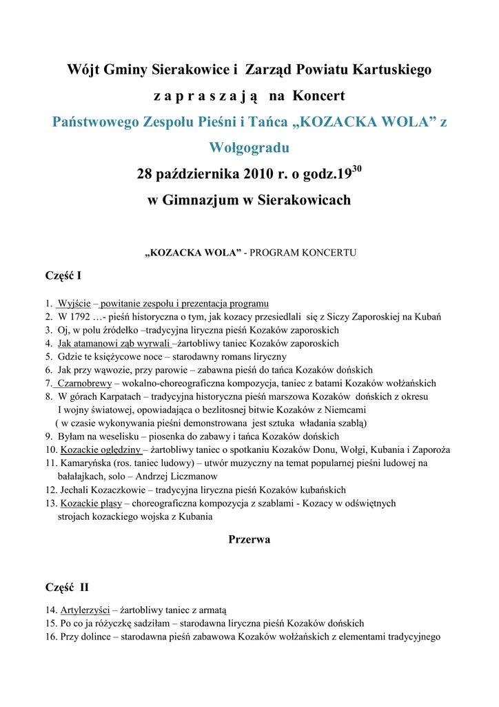 PROGRAM KONCERTU KOZACKA WOLA