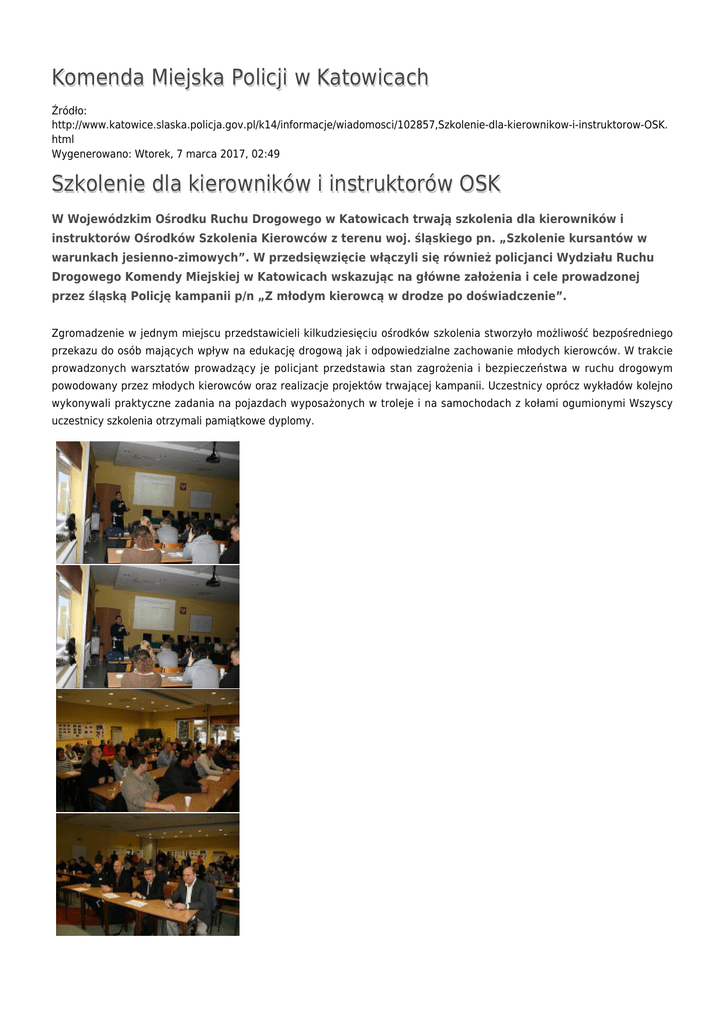 Komenda Miejska Policji w Katowicach Szkolenie dla kierowników i