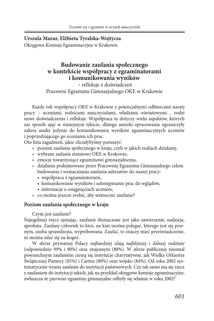 601 Budowanie zaufania społecznego w kontekście współpracy z