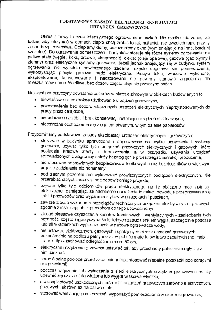 nie eksploatowacuszkodzonychinstalacjii uządzeń grzewczychzarówno e|ektrycznych,
