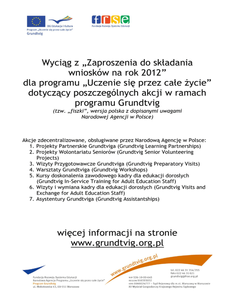 (w języku polskim) wszystkich akcji programu Grundtvig