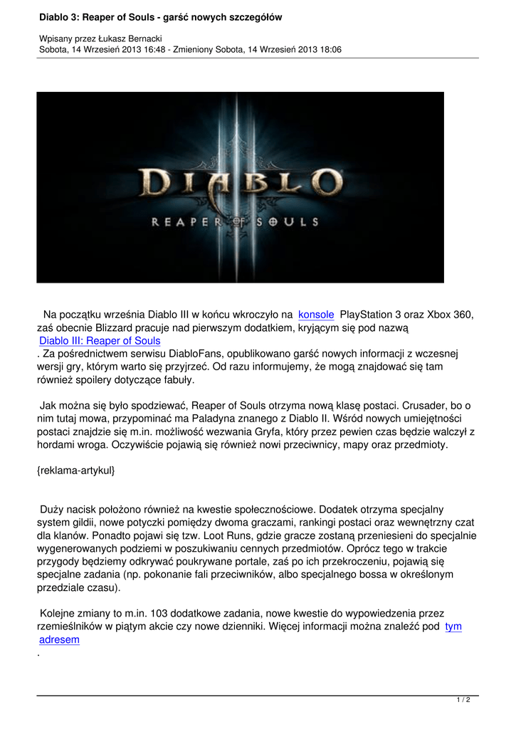 Na początku września Diablo III w końcu wkroczyło na konsole PlayStation 3 oraz Xbox 360,