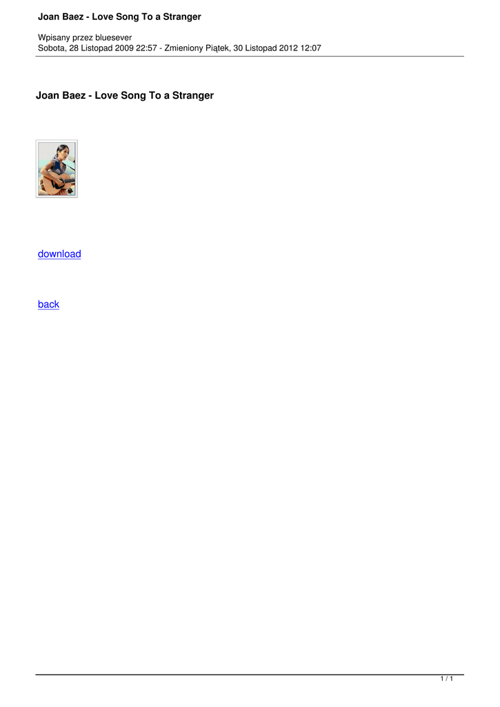 Joan Baez - Love Song To a Stranger Wpisany przez bluesever Sobota, 28 Listopad 2009 22:57 - Zmieniony Piątek, 30 Listopad 2012 12:07 Joan Baez - Love Song To a Stranger download back 1/1