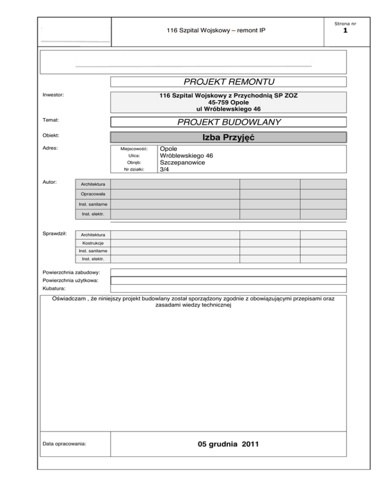 Opis 3 - 116 Szpital Wojskowy z Przychodnią SP ZOZ w Opolu