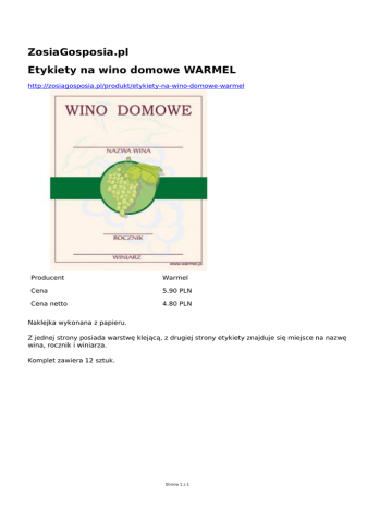 ZosiaGosposia.pl Etykiety na wino domowe WARMEL