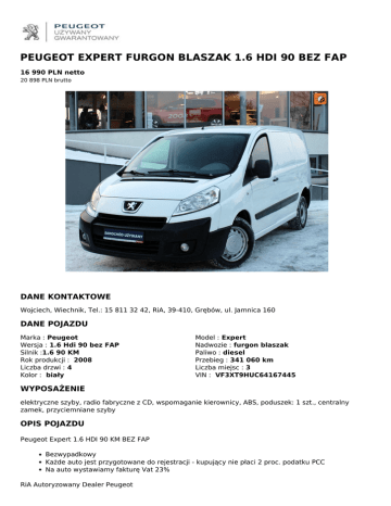 PEUGEOT EXPERT FURGON BLASZAK 1.6 HDI 90 BEZ FAP