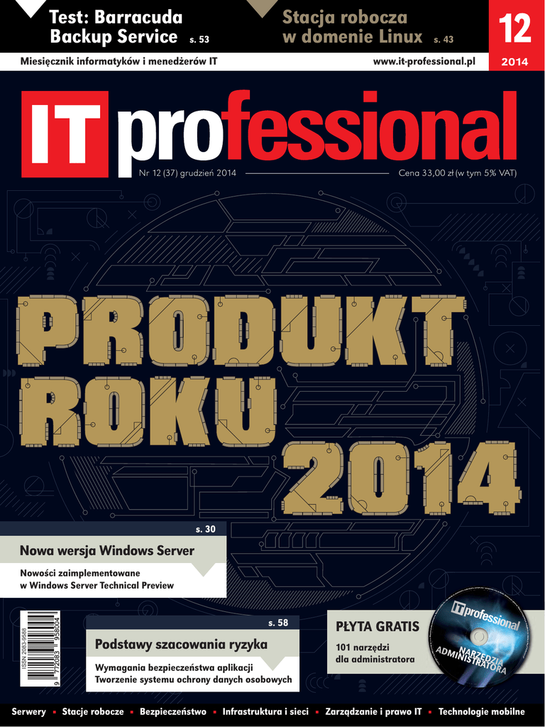 Test: Barracuda Backup Service Stacja robocza w domenie Linux s. 53 Miesięcznik informatyków i menedżerów IT s. 43 www.it-professional.pl Nr 12 (37) grudzień 2014 12 2014 Cena 33,00 zł (w tym 5% VAT) s. 30 Nowa wersja Windows Server ISSN 2083-9588 Nowości zaimplementowane w Windows Server Technical Preview Serwery s. 58 Podstawy szacowania ryzyka Wymagania bezpieczeństwa aplikacji Tworzenie systemu ochrony danych osobowych Stacje robocze Bezpieczeństwo Infrastruktura i sieci PŁYTA GRATIS 101 narzędzi a dla administratora Zarządzanie i prawo IT Technologie mobilne WYBÓR REDAKCJI WYBÓR CZYTELNIKÓW PRODUKT ROKU 2014 NAJLEPSI Z NAJLEPSZYCH Jak co roku przyjrzeliśmy się wspólnie z naszymi Czytelnikami środowisku naturalnemu administratora IT. Przegląd najlepszego sprzętu, oprogramowania i usług czas zacząć! A. Cieślik, M. Jurczyk odobnie jak w ubiegłym roku zaprosiliśmy naszych Czytelników do zrobienia swoistego przeglądu rynku rozwiązań IT. Profesjonaliści, pasjonaci i specjaliści zajmujący się zawodowo nowymi technologiami, nominowali niemal 350 rozwiązań sprzętowych, aplikacji i usług, które zebraliśmy w 16 kategoriach i poddaliśmy głosowaniu. Czytelnicy wybrali zwycięzców. Równolegle oceniliśmy najlepsze naszym zdaniem rozwiązania wykorzystywane w codziennej praktyce IT, biorąc pod uwagę zarówno produkty dla dużych korporacji, jak i rozwiązania dedykowane małym i średnim firmom. P TENDENCJE I ZMIANY W tym roku postawiliśmy na bardziej zaawansowane rozwiązania w stosunku do roku poprzedniego. Szczególnie warto zwrócić uwagę na backup – do konkursu nominowano większą ilość sprzętu zintegrowanego z oprogramowaniem oraz obsługą sprzętowych macierzy. Wynika to najprawdopodobniej z coraz większego zapotrzebowania na przestrzeń dyskową przeznaczaną na dane. Nawet w średniej wielkości organizacjach na dobre zadomowiły się macierze NAS oraz przynajmniej w podstawowym stopniu wykorzystywana jest wirtualizacja. Potwierdza to wybór macierzy – na liście znalazł się cały przekrój urządzeń – od niewielkich sprzętów w obudowie desktop, po większe rozproszone systemy. Ciekawie rozwija się kategoria sieci WLAN. Do niedawna w firmach i instytucjach królowały punkty dostępowe implementowane jako „standalone”. Jednak coraz więcej osób decyduje się na bardziej zaawansowane wdrożenia, w ramach których uruchamiamy zintegrowaną sieć bezprzewodową bazującą na kontrolerze sieci bezprzewodowej. Wyraźnie też widać pewien trend – dążymy do coraz większej centralizacji zarządzania infrastrukturą oraz skalowalności wdrażanych rozwiązań. Bardzo istotną cechą często decydującą o wyborze rozwiązania są zaimplementowane mechanizmy bezpieczeństwa. Zaskakujące jest natomiast stosunkowo niewielkie zainteresowanie rozwiązaniami dotyczącymi centralnego zarządzania urządzeniami mobilnymi. Pomimo że większość z nas korzysta ze służbowych urządzeń mobilnych, rozwiązań typu MDM w plebiscycie było niewiele. Już za rok sytuacja może wyglądać zupełnie inaczej. Zasady konkursu Z roku na rok na dostępne na rynku urządzenia, usługi i aplikacje oferują coraz większą funkcjonalność. Z tego powodu zwiększyliśmy liczbę kategorii w stosunku do roku poprzedniego. Zależało nam na lepszej kategoryzacji różnych grup produktowych. Dzięki temu zabiegowi wspólnie z Czytelnikami mogliśmy docenić rozwiązania dostarczające konkretnych funkcjonalności. Głosowanie odbyło się w następujących kategoriach: NAJLEPSZE OPROGRAMOWANIE: • MONITORING I ZARZĄDZANIE • NARZĘDZIA • WIRTUALIZACJA • BEZPIECZEŃSTWO • BACKUP NAJLEPSZY SPRZĘT: • SIEĆ LAN • SIEĆ WLAN • WYPOSAŻENIE SERWEROWNI • UTM I FIREWALL • NAS • • • • • SERWER STACJA ROBOCZA LAPTOP SMARTFON/TABLET DRUKARKA BIUROWA /URZĄDZENIE MFP NAJLEPSZA USŁUGA: • CLOUD W każdej z kategorii zwycięzcami zostały dwa produkty, jeden wskazany przez Czytelników, drugi przez redakcję. Głosowanie odbyło się w dwóch etapach. W pierwszym Czytelnicy przesyłali swoje propozycje konkursowe za pośrednictwem formularza dostępnego na stronie internetowej magazynu „IT Professional”, w drugim oddawane były głosy na produkty zebrane w powyższych kategoriach. www.it-professional.pl | – Grudzień 2014 3 PRODUKT ROKU 2014 OPROGRAMOWANIE MONITORING I ZARZĄDZANIE WYBÓR CZYTELNIKÓW Axence nVision Pro 7.5 Modularność rozwiązania i różnorodność zastosowań to główne zalety pakietu. Każdy z modułów odpowiedzialny jest za inne zadania, tworząc kompletne centrum monitoringu i zarządzania infrastrukturą sieciowo-serwerową oraz oprogramowaniem. Moduł Network odpowiada za wykrywanie i wizualizację sieci z pełnym monitoringiem routerów, przełączników, serwerów, systemów i aplikacji. Możliwa jest również kontrola parametrów środowiskowych w serwerowni dla wszystkich czujników korzystających z SNMP. Moduł Inventory odpowiada za inwentaryzację sprzętu i oprogramowania z uwzględnieniem danych administracyjnych, faktur i kosztów serwisowania. Moduł Users umożliwia pełną kontrolę stanowiska pracy użytkowników z rozbiciem na czas pracy, wykorzystanie poszczególnych aplikacji, listę odwiedzanych stron itp. W pakiecie dostarczane są również moduły HelpDesk (zdalny dostęp do stacji roboczych, obsługa zgłoszeń serwisowych) oraz DataGuard (kontrola dostępu do urządzeń przenośnych, autoryzacja działań oraz audyt operacji na plikach). W wersji Pro możliwa jest równoczesna praca wielu administratorów. WYBÓR REDAKCJI statlook 8.3 na zewnętrzne nośniki pamięci oraz W statlooku 8.3 szczególny nacisk tworzyć raporty wykorzystania popołożono na kontrolę użytkowników szczególnych aplikacji. Raportowanie i raporty dotyczące wydajności ich pracy. Oprogramowanie działa odbywa się dla każdego użytkowna stacjach roboczych nika osobno, bez względu na to,