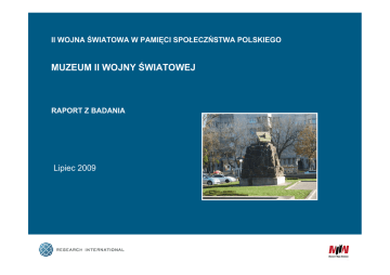 II WOJNA ŚWIATOWA W PAMIĘCI SPOŁECZŃSTWA POLSKIEGO MUZEUM II WOJNY ŚWIATOWEJ RAPORT Z BADANIA Lipiec 2009 SPIS TREŚCI STRONA TYTUŁ 3 Wprowadzenie – cele badania oraz metodologia 4 Czy Muzeum II wojny światowej jest potrzebne? 11 Co powinno przekazywać Muzeum II wojny światowej? 25 Jak powinno wyglądać Muzeum II wojny światowej? 28 Gdzie powinno być zlokalizowane Muzeum II wojny światowej? 31 Podsumowanie Aneksy 2 WPROWADZENIE - CELE BADANIA ORAZ METODOLOGIA Cele badania: Rocznica wybuchu II wojny światowej jest okazją do upamiętniania wydarzeń, które miały miejsce 70 lat temu, ale jednocześnie powinna stanowić impuls dla odbudowywania pamięci Polaków o wojnie. U podstaw takiej pracy leżeć powinna pogłębiona diagnoza stanu społecznej świadomości na ten temat. Przeprowadzono badanie o dużym zasięgu, którego celami było: określenie społecznych oczekiwań wobec form upamiętniania wydarzeń II wojny światowej; diagnoza stanu polskiej potocznej pamięci zbiorowej o II wojnie światowej. W tym dokumencie przedstawiono opinie dotyczące Muzeum II Wojny Światowej. W celu uzyskania odpowiedzi na pytania badawcze, w dniach 20/05/2009-20/06/2009 przeprowadzono: 12 dyskusji grupowych: w Warszawie, Katowicach, Gdańsku, Przemyślu oraz Białymstoku. Respondentami były osoby w wieku 18-65 lat, interesujące się historią, posiadające średnie lub wyższe wykształcenie. Wybór wypowiedzi uczestników spotkań znajduje się w Aneksie 1. badanie ilościowe realizowane metodą osobistego wywiadu kwestionariuszowego, w mieszkaniach respondentów na reprezentatywnej próbie dorosłej ludności Polski. Wielkość całej próby: N=1200. 3 Czy Muzeum II wojny światowej jest potrzebne? 4 CZY MUZEUM II WOJNY ŚWIATOWEJ JEST POTRZEBNE? Upamiętnienie bohaterstwa tych, którzy polegli w walce o Polskę Zaspokojenie potrzeby obiektywnego spojrzenia na wojnę (archiwizacji dostępnych materiałów, zbliżania się do „prawdy obiektywnej”) Przestrzeganie przed skutkami wojen i systemów totalitarnych We wszystkich grupach dyskusyjnych zdecydowanie pozytywnie oceniono pomysł utworzenia Muzeum II Wojny Światowej. W opinii respondentów, jest ono potrzebne, ponieważ ma do spełnienia wielorakie funkcje społeczne: Rejestracja wspomnień świadków wojny – pokolenia, które odchodzi Podtrzymywanie pamięci o bardzo ważnym wydarzeniu historycznym – ostatniej wojnie światowej Pojedynczy uczestnicy dyskusji wyrażali opinie krytyczne. Koncentrowały się one wokół: istnienia bardziej pilnych potrzeb w Polsce – szczególnie w dobie kryzysu gospodarczego ogólnego przesytu informacyjnego na temat wojny („za dużo się o niej mówi”) 5 Edukacja młodych pokoleń, pokazywanie historii własnego kraju CZY MUZEUM II WOJNY ŚWIATOWEJ JEST POTRZEBNE? Badanie ilościowe potwierdziło opinie wyrażane podczas grup dyskusyjnych. Wśród respondentów dominuje pogląd, że Muzeum jest potrzebne, a opinię taką najczęściej uzasadniano tym, że: należy podtrzymywać pamięć o II wojnie światowej; trzeba przekazywać młodym pokoleniom wiedzę o wojnie; pamięć o wojnie ważna jest dla polskiej tożsamości narodowej; potrzebne jest centrum edukacji, badań i gromadzenia pamiątek związanych z tym okresem. Przekonanie o konieczności utworzenia Muzeum wzrasta wraz z wykształceniem: Polacy z wyższym wykształceniem są relatywnie najbardziej przekonani o potrzebie jego utworzenia. W nielicznych wypowiedziach krytycznych wyrażanych w badaniu ankietowym najczęściej wspominano, że w Polsce jest wiele muzeów z ekspozycjami dotyczącymi wojny oraz, że aktualnie są pilniejsze potrzeby, które wymagają dużych nakładów finansowych. 6 CZY MUZEUM II WOJNY ŚWIATOWEJ JEST POTRZEBNE? W Polsce ma powstać Muzeum Drugiej Wojny Światowej. Jak Pan(i) ocenia inicjatywę zbudowania w Polsce takiego muzeum? Średnia Wiek 1,7% do 29 (N=345) 38,0% 2,0% Ogółem 15,7% 3,4 42,7% 12,7% 3,4 41,0% 2,1% 41,7% 12,8% 3,4 od 50 do 59 1,6% (N= 189) 37,6% 4,8% 44,4% 11,6% 3,4 od 60 do 69 0,0% (N= 129) 36,4% 5,4% 54,0% 7,8% 3,5 0,8% (N = 130) 4,6%33,8% 55,4% 5,4% 3,5 0,9% od 30 do 39 (N=187) 41,4% 2,3% 42,6% 3,2% od 40 do 49 [3] Raczej pozytywnie 38,3% Średnia 3.4 [2] Raczej negatywnie 3,2% [1] Zdecydowanie negatywnie 1,5% [4] Zdecydowanie pozytywnie 45,0% 70 i w ięcej (N = 187) Wykształcenie Trudno powiedzieć 12,1% 1,4% podstaw ow e (N = 142) 6,3%34,5% zasadnicze zaw . N=1200 średnie w yższe [1] Zdecydowanie negatywnie [3] Raczej pozytywnie Trudno powiedzieć (N = 319) 1,3% 37,6% 2,5% 42,3% 15,5% 3,4 42,3% 16,3% 3,4 1,8% 39,3% (N= 562) 2,8% 45,6% 10,5% 3,4 1,1% (N = 177) 39,0% 2,8% 50,3% 6,8% 3,5 [2] Raczej negatywnie [4] Zdecydowanie pozytywnie 7 CZY MUZEUM II WOJNY ŚWIATOWEJ JEST POTRZEBNE? Dlaczego Pan(i) tak uważa? 93,3% POZYTYWNE KRYTYCZNE Należy podtrzymywać pamięć o II wojnie światowej 27,3% Trzeba przekazywać młodym pokoleniom wiedzę o II wojnie światowej 25,0% Pamięć o wojnie ważna dla narodowej pamięci i tożsamości Potrzeba centrum edukacji, badań, gromadzenia i eksponowania pamiątek Należy podtrzymywać pamięć o ofiarach wojny, o tragedii ludzi, cierpieniu Potrzeba prawdy o wojnie, ustalenia, utrwalenia i przekazywania obiektywnej wiedzy W Polsce jest już wiele muzeów z ekspozycjami dotyczącymi wojny 2,0% Obecnie sa pilniejsze potrzeby, nie ma pieniędzy, środków na muzea 1,4% Zbyt wiele uwagi poświęca się II wojnie światowej 0,7% Muzeum nie pokaże prawdy, nie będzie obiektywne 0,7% Brak zainteresowania, niewiele osób interesuje się obecnie muzeami 0,1% 15,0% 13,6% 7,0% 4,9% Wiedza o II wojnie światowej stanowi przestrogę, popularyzuje postawy antywojenne 4,1% Należy podtrzymywać pamięć o walce i bohaterstwie okresu wojny 2,9% Zanika pamięć wojny, odchodzą świadkowie, niebezpieczeństwo zapomnienia 1,7% Inne pozytywne oraz wypowiedzi ogólne 5,0% 7,1% Ogółem N=1008 (Badani mający zdanie o Muzeum) Inne negatywne 0,8% 8 