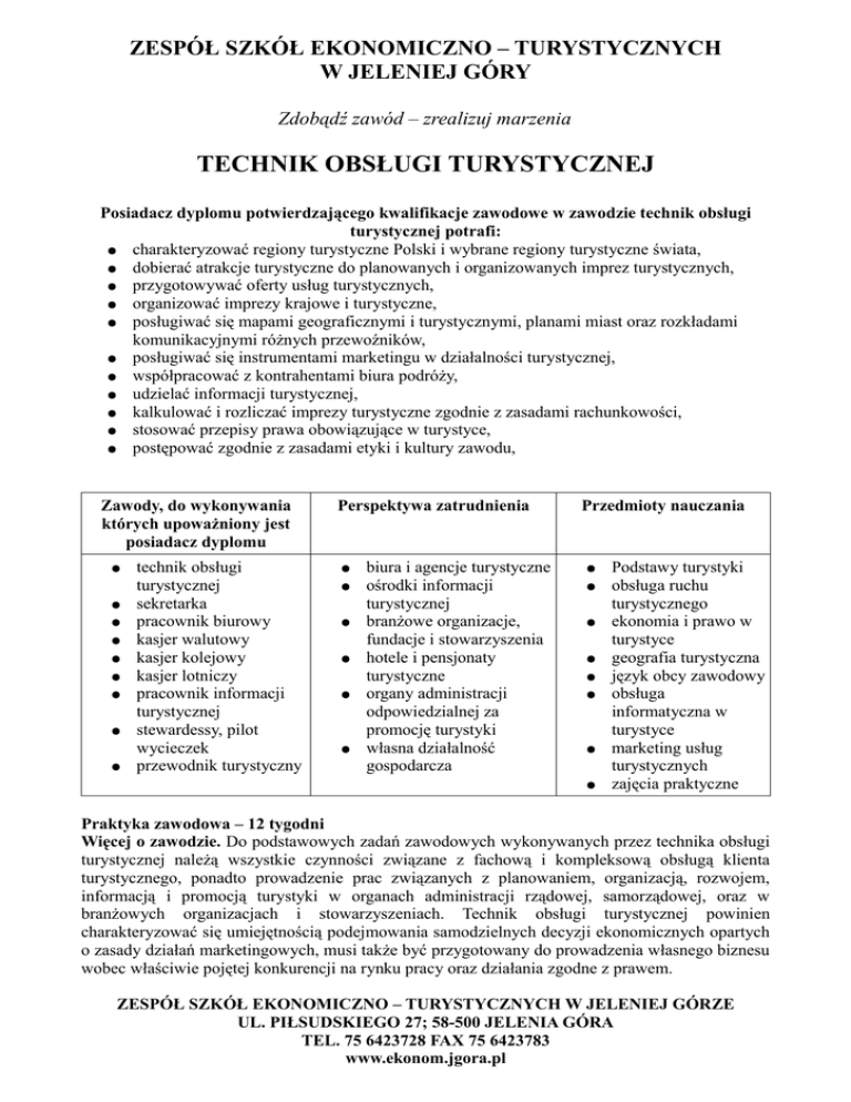 technik obsługi turystycznej - Zespół Szkół Ekonomiczno