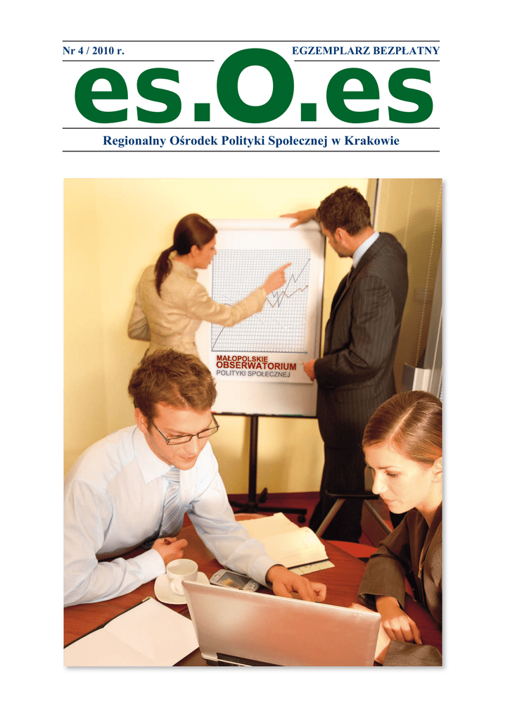 es.O.es Nr 2010 r. 2 //2010 2010r. Nr 44/ r. EGZEMPLARZ EGZEMPLARZ BEZPŁATNY BEZPŁATNY Regionalny Regionalny Ośrodek Ośrodek Polityki Polityki Społecznej Społecznej w w Krakowie Krakowie EKONOMIA SPOŁECZNA -OGRÓD MOŻLIWOŚCI es.Oes Biuletyn Regionalnego Ośrodka Polityki Społecznej w Krakowie 30-070 Kraków, ul. Piastowska 32 tel.:12 422 06 36; fax.12 422 06 36 wew.44 e-mail: [email protected] www.rops.krakow.pl Biuro Projektu „Małopolskie Obserwatorium Polityki Społecznej – Etap I” Regionalny Ośrodek Polityki Społecznej ul. Piastowska 32 30-007 Kraków tel.: 12 661-03-00 wew.40 Zespół redakcyjny: Wioletta Wilimska – redaktor naczelny Alina Handzlik Małgorzata Szlązak Małgorzata Szczygieł Projekt okładki: Robert Krzeszowiak Okładka: Bogusław Dziedzic ISSN 1231-2770 Nakład: 1500 egz. Wydawnictwo współfinansowane przez Unię Europejską w ramach Europejskiego Funduszu Społecznego Skład: Bogusław Dziedzic tel. 501 161 048 Druk: Drukarnia Unidruk ul. Bronowicka 117, 30-121 Kraków tel. 12 638 42 44, 54, 64 www.unidruk.com.pl Spis treści 1. Wstęp, Wioletta Wilimska................................................................................................................... 3 2. Małopolskie Obserwatorium Polityki Społecznej – informacja dla rozwoju regionu, Małgorzata Szlązak............................................................................................................................................... 4 3. Internetowy Obserwator Statystyk Społecznych – analiza na skróty, Magdalena Zdun.................... 5 4. Jakie zawody będą potrzebne na lokalnych rynkach pracy?, Antonina Michalska............................ 8 5. Prognoza ludności dla powiatów województwa małopolskiego do roku 2020, Andrzej Binda......... 11 6. Potencjał kooperacyjny małopolskich organizacji pozarządowych, Joanna Pieniążek - Basta........ 14 7. Województwo małopolskie w liczbach – wybrane statystyki z Internetowego Obserwatora Statystyk Społecznych, Magdalena Zdun................................................................... 15 8. Pozytywne tendencje związane z realizacją PO KL – wybrane obszary, Iwona Banasiewicz......... 22 Spis treści 9. Tydzień ekonomii społecznej na krakowskich uczelniach, Rafał Barański...................................... 26 10.Rozwój nowatorskich, integrujących działań przeciwdziałających zjawisku wykluczenia społecznego, Marcin Stolarski ........................................................................................................ 28 11.Działania Regionalnego Ośrodka Polityki Społecznej w Krakowie w związku z Europejskim Rokiem Walki z Ubóstwem i Wykluczeniem Społecznym, Katarzyna Wojtanowicz ....................... 30 Przed nami okres podsumowań, analiz, swoistego rachunku dokonań zawodowych w kończącym się roku. W myśl zasady, że gdy jeden etap się kończy jednocześnie rozpoczyna się następny, stajemy przed kolejnym wyzwaniem dotyczącym planowania aktywności na nadchodzący rok. Niewątpliwie szkieletem naszych planów są możliwości budżetowe, jednak to od naszej kreatywności, umiejętności poszukiwania alternatywnych źródeł finansowania, współpracy i kooperacji z partnerami, często spoza sektora samorządowego, zależy oferta jaką kierujemy do najbardziej potrzebujących mieszkańców regionu. Aby skutecznie projektować działania w obszarze polityki czy pomocy społecznej niezbędna jest aktualna, poparta analizą badawczą wiedza. Czy aby na pewno? Zapewne nie raz zastanawialiście się Państwo, na ile potrzebne są badania do planowania skutecznych strategii i polityk. Nierzadko też, spotkaliście się z opinią deprecjonującą znaczenie badawczych osiągów i sami zastanawialiście się nad możliwościami praktycznego wykorzystania empirycznych doniesień. Z drugiej jednak strony często to właśnie w nich szukaliście Państwo wsparcia dla realizowanych programów oraz postulowaliście o szeroki i łatwy dostęp do wykonanych analiz. I mieliście do tego Drodzy Państwo prawo. Badania społeczne znajdują zastosowanie wszędzie tam, gdzie ważna jest jakość relacji między społeczeństwem, a podmiotami życia publicznego. Powinny one bowiem służyć realizacji konkretnych polityk publicznych i znajdować przełożenie na jasno określone interwencje. Ich celem jest zapewnienie komunikacji i przetarcie kanału między potrzebującymi a instytucjami wsparcia. Innymi słowy, badania społeczne są formą „rozmowy” realizatora polityki z jej beneficjentem, sposobem na identyfikację potrzeb, czy wreszcie formą „pomiaru” problemu. Pod pojęciem badań społecznych rozumie się zatem usystematyzowane pozyskiwanie wiedzy na temat życia społecznego, mające na celu odkrycie i zrozumienie istniejących prawidłowości, czyli praw rządzących tym życiem. Badania społeczne należy zatem traktować jako pierwszy etap interwencji, podkład do planowania bardziej trafnych, efektywnych i usystematyzowanych działań. Wychodząc naprzeciw Państwa oczekiwaniom postanowiliśmy w niniejszym numerze kwartalnika es.O.es. przybliżyć tematykę i charakter badań realizowanych w ramach Małopolskich Obserwatoriów Rozwoju Regionalnego, zapoznać Państwa z badaniami społecznymi realizowanymi przez zespół Małopolskiego Obserwatorium Polityki Społecznej w Regionalnym Ośrodku Polityki Społecznej w Krakowie. Szczególnej Państwa uwadze polecam artykuł dotyczący Internetowego Obserwatora Statystyk Społecznych - nowoczesnego narzędzia wizualizującego wskaźniki społeczne, który powstał z myślą o pracy wszystkich zaangażowanych w kreatywne planowanie polityk społecznych w regionie. Podsumowując rok wielu z nas stawia sobie uniwersalne pytania o teraźniejszość, ale i o przyszłość, pytania o adekwatność i skuteczność podejmowanych działań, czy też perspektywy konkretnych metod pracy. Ważne są także pytania o spos