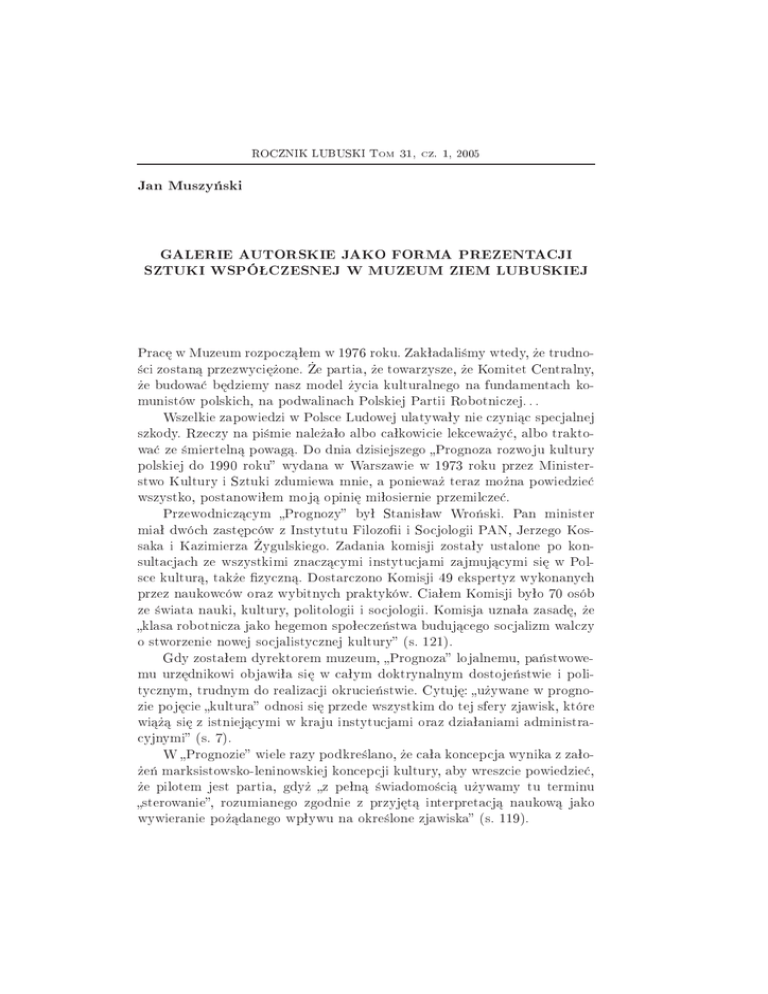 Jan Muszy ski GALERIE AUTORSKIE JAKO FORMA PREZENTACJI