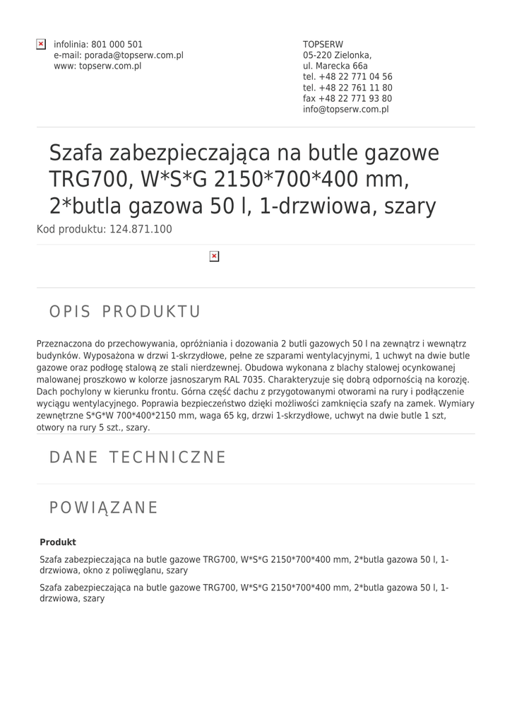 Szafa zabezpieczająca na butle gazowe TRG700, W*S*G