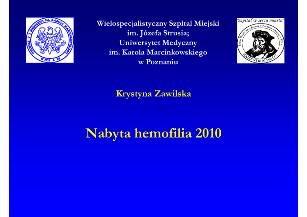 Nabyta hemofilia 2010 – Prof. dr hab. n. med. Krystyna Zawilska