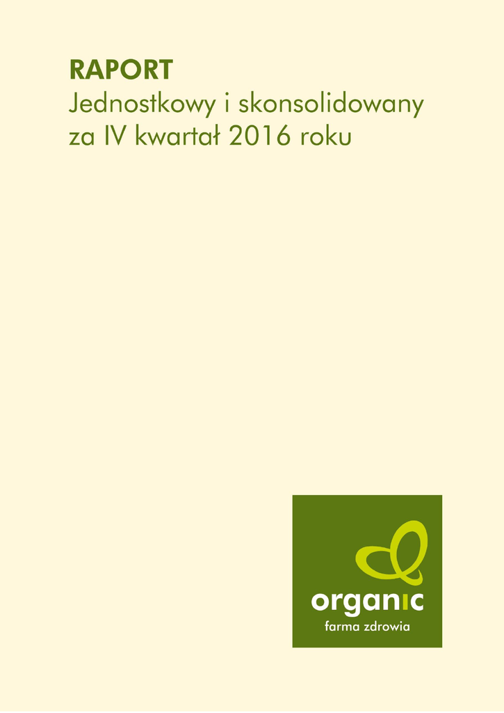 1 Organic Farma Zdrowia S.A. Jednostkowy i skonsolidowany raport za IV kwartał 2016 roku Spis treści List Prezesa Zarządu Organic Farma Zdrowia S.A. ....................................................................................................................3 Wybrane jednostkowe i skonsolidowane dane finansowe Organic Farma Zdrowia S.A. .........................................6 Struktura Grupy Kapitałowej Organic Farma Zdrowia S.A.: ..................................................................................................9 Charakterystyka działalności Grupy Kapitałowej Organic Farma Zdrowia S.A. ........................................................ 10 1) Organic Farma Zdrowia S.A. – Jednostka Dominująca. ......................................................................................... 10 2) Pozostałe jednostki Grupy Kapitałowej....................................................................................................................... 18 Czynniki i zdarzenia, które miały wpływ na osiągnięte wyniki w IV kwartale 2016 roku: ................................ 22 Informacja na temat działań w obszarze rozwoju prowadzonej działalności podejmowanych w okresie IV kwartału 2016 roku:.................................................................................................................................................. 25 Działania z zakresu CSR prowadzone przez Organic Farma Zdrowia S.A. i spółki Grupy Kapitałowej: ......... 29 Jednostkowe i skonsolidowane sprawozdania finansowe za IV kwartał 2016 roku. ............................................. 32 Zestawienie informacji opublikowanych w trybie raportów EBI i ESPI w okresie IV kwartału 2016 roku. 50 Oświadczenie w sprawie prognoz .................................................................................................................................................. 51 Oświadczenie w sprawie rzetelności sprawozdania finansowego .................................................................................. 51 str. 2 Organic Farma Zdrowia S.A. Jednostkowy i skonsolidowany raport za IV kwartał 2016 roku List Prezesa Zarządu Organic Farma Zdrowia S.A. Szanowni Akcjonariusze, 2016 rok był kolejnym okresem dynamicznego wzrostu Grupy Organic Farma Zdrowia i osiągnięcia nowych, rekordowych poziomów sprzedaży: Sprzedaż Organic Farma Zdrowia wyniosła 54,5 mln zł ze wzrostem LfL 3,4%. Sprzedaż spółki zależnej Eko-Wital wyniosła 44 mln zł ze wzrostem 32%. Sprzedaż Grupy Organic Farma Zdrowia wyniosła 91,1 mln zł ze wzrostem 13%. Wspaniała dynamika wzrostu sprzedaży w części hurtowo-dystrybucyjnej realizowanej przez spółkę zależną Eko-Wital pozwoliła zamknąć rok zyskiem EBITDA na poziomie blisko 2 mln zł, mimo wielu negatywnych czynników zewnętrznych jak niezwykle zmienny i bardzo wysoki kurs Euro, zakończenie działalności dwóch bardzo dużych i ważnych klientów, jak sieć delikatesów Alma i Marcpol, oraz istotne braki surowcowo-towarowe na rynku europejskim spowodowane dużymi wzrostami popytu na wysokiej jakości produkty ekologiczne na całym świecie. W części detalicznej, realizowanej przez Spółkę Organic Farma Zdrowia mieliśmy do czynienia ze znaczącym spadkiem rentowności w związku z kumulacją wielu negatywnych zdarzeń, z których na znaczną część Spółka nie ma wpływu w krótkim okresie. Najistotniejsze zdarzenia to: Znaczący, rynkowy wzrost poziomu wynagrodzeń pracowników zatrudnionych w handlu (3 podwyżki płac na przestrzeni 12 miesięcy) Podwyższone koszty czynszów związane z wysokim kursem EURO Niższy od oczekiwanego poziom średniej marży na sprzedaży towarów Koszty związane z likwidacją nierentownych obiektów handlowych Wysokie koszty finansowe oraz niegotówkowy koszt finansowy związany z wyceną na dzień bilansowy otrzymanej w Euro pożyczki od głównego akcjonariusza (inne koszty finansowe: 135 tys. zł). Ponadto Zarząd zdecydował o zawiązaniu rezerw w kwocie 1,3 mln zł na planowane koszty likwidacji kolejnych czterech nierentownych sklepów w 2017 roku, ale też rozpoczęcie szerokiego frontu rewitalizacji wielu najstarszych Delikatesów (związane z czasowym zamykaniem sklepów i całkowitą utratą obrotów w tym czasie), dla których zostały odnowione umowy najmu na kolejne 5-10 lat. str. 3 Organic Farma Zdrowia S.A. Jednostkowy i skonsolidowany raport za IV kwartał 2016 roku Kolejnym projektem Zarządu jest powiększanie powierzchni lokali handlowych – po powiększeniu, rentowność obiektów przez pewen czas jest niższa, w związku ze skokowym wzrostem kosztów funkcjonowania niezrekompensowanym od razu wyższą sprzedażą i wypracowaną marżą. Wszystkie te i wiele innych działań Zarządu i całej Spółki mają za cel wypracowanie możliwość do kolejnych bardzo dynamicznych wzrostów sprzedaży i rentowności w obecnym 2017 roku i w perspektywie kolejnych kilku lat. Dziękujemy naszym Klientom, Akcjonariuszom i Inwestorom Sławomir Chłoń Prezes Zarządu i Przemysław Tomaszewski Wiceprezes Zarządu str. 4 Organic Farma Zdrowia S.A. Jednostkowy i skonsolidowany raport za IV kwartał 2016 roku _____________________________________________________________________________________________________________________________ _________________________________________________ Organic Farma Zdrowia to pierwsza i największa w Polsce sieć samoobsługowych Delikatesów z produktami ekologicznymi i tradycyjnymi. Sieć– Organic Farma Zdrowia składa się z 42 Delikatesów stacjonarnych i online. Delikatesy stacjonarne działają w Warszawie, Gdyni, Gdańsku, Rumi, Katowicach, Gliwicach, Krakowie, Łodzi, Płocku, Poznaniu, Wrocławiu, Piasecznie, Konstancinie i Łomiankach a Delikatesy on-line na terenie całego kraju oferując największy w Polsce asortyment produktów ekologicznych. Delikatesy sieci oferują ekologiczną i tradycyjną żywność, kosmetyki oraz śr