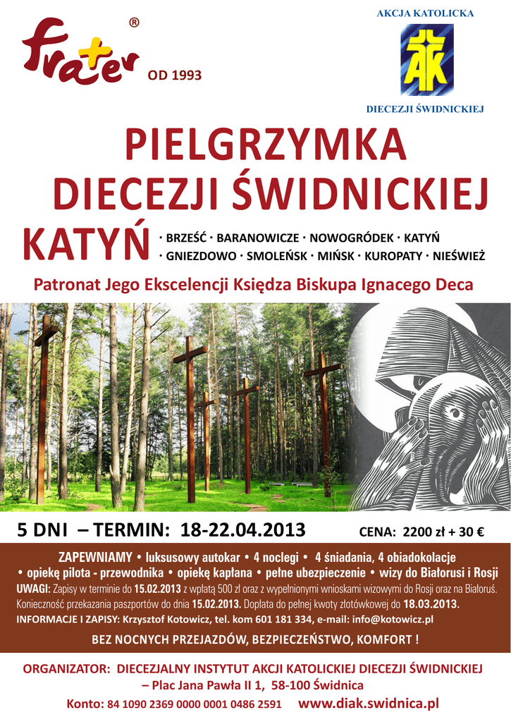 PIELGRZYMKA DiecezJi ŚWiDNicKieJ KATYŃ 5 DNi – TeRMiN: 18