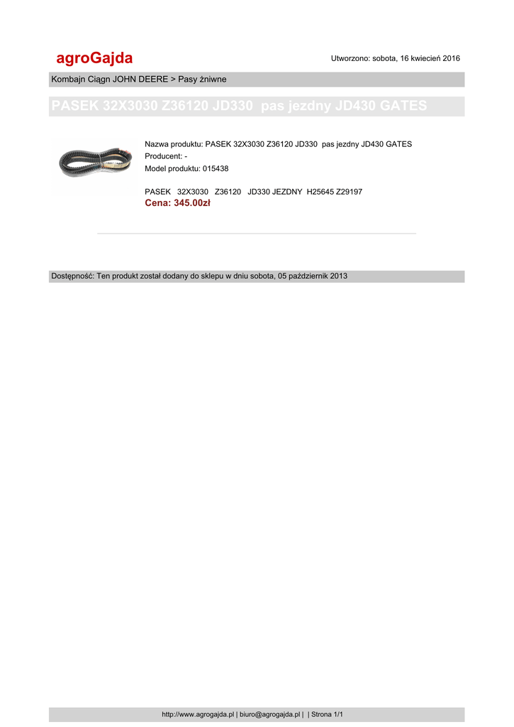 PASEK 32X3030 Z36120 JD330 pas jezdny JD430 GATES