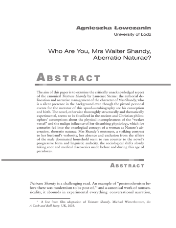 of the canonical Tristram Shandy by Laurence Sterne: the authorial delineation and narrative management of the character of Mrs Shandy, who