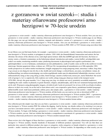 z gorzanowa w swiat szeroki--: studia i materiay ofiarowane profesorowi arno herzigowi w 70-lecie urodzin PDF book - read or download z gorzanowa w swiat szeroki--: studia i materiay ofiarowane profesorowi arno herzigowi w 70-lecie urodzin z gorzanowa w swiat szeroki--: studia i materiay ofiarowane profesorowi arno herzigowi w 70-lecie urodzin. Now you can see z gorzanowa w swiat szeroki--: studia i materiay ofiarowane profesorowi arno herzigowi w 70-lecie urodzin page on our library. On this page you can get information, citations, manuals and alternative version of z gorzanowa w swiat szeroki--: studia i materiay ofiarowane profesorowi arno herzigowi w 70-lecie urodzin. Also you can download z gorzanowa w swiat szeroki--: studia i materiay ofiarowane profesorowi arno herzigowi w 70-lecie urodzin in PDF, DOC or TXT formats using next direct link. In our library you can find mane books, for example : z gorzanowa w swiat szeroki--: studia i materiay ofiarowane profesorowi arno herzigowi w 70-lecie urodzin, to pringipato ts achaias: 1205-1460, der blaumilchkanal: humoresken und satiren, the last christian: the release of the siberian seven, canti degli operai torinesi: dalla fine dell800 agli anni del fascismo, the house at stormy waters, a feminist commentary on the babylonian talmud: introduction and studies, warren buffett: auf pilgerfahrt zum orakel von omaha, monitoring metabolic status: predicting decrements in physiological and cognitive performance, der gabelstaplerfahrer: so ist er fachmann, zeichenkunst aus drei jahrhunderten, south of seattle: notes on life in the northwest woods, unterwegs: literatur-gegenwart china, evidence act, 1950 (act 56): incorporating all amendments as at 10th september 1983, nordic perspectives on carbon market mechanisms, kongjik songopop kwa songo pangsong simui, unesennye vodkoi, feng zikai: yi ge you pu sa xin chang de xian shi zhu yi zhe, health and social change: a critical theory, joe jones, navazhdenie: roman, de strafbaarstelling van milieuverontreiniging: een rechtsvergelijkende studie naar de administratief afhankelijke structuur van het milieustrafrecht, hong ye huo yong cheng yu dian, frank borzage: sarastro a hollywood, moose jaw, maria fitzherbert: the secret wife of george iv, la tv a capotavola, felix explores our world, yelang wang guo chuan qi, trends in the transport sector 1970-2001, shivaji--the great maratha: 3-in-1, lang zong yun ying: wu zhinan san wen ji, protokoly sovetskikh mudretsov, relighting the souls: studies in plutarch, in greek literature, religion, and philosophy, and in the new testament background, photo art & craft: 50 projects using photographic imagery, al-irshd al-nafs f aytin al-yawmyah f aw al-way al-ilh wa-al-hady al-nabaw, ultravox in their own words, im on the trail to learn about scale!, non-cooperative game theory, pemukiman kembali pengungsi akibat konflik sosial: studi kasus pontianak, ambon, poso, dan sampit, aden, z gorzanowa w swiat szeroki--: studia i materiay ofiarowane profesorowi arno herzigowi w 70-lecie urodzin, all this books you can read on our site or download in PDF - z gorzanowa w swiat szeroki--: studia i materiay ofiarowane profesorowi arno herzigowi w 70-lecie urodzin, DOC - z gorzanowa w swiat szeroki--: studia i materiay ofiarowane profesorowi arno herzigowi w 70-lecie urodzin or TXT - z gorzanowa w swiat szeroki--: studia i materiay ofiarowane profesorowi arno herzigowi w 70-lecie urodzin format online. Our collection provide simple ways that you can find a z gorzanowa w swiat szeroki--: studia i materiay ofiarowane profesorowi arno herzigowi w 70-lecie urodzin PDF file without the digging. And by having our ebooks online or by stocking it on your pc, you have convenient answers with z gorzanowa w swiat szeroki--: studia i materiay ofiarowane profesorowi arno herzigowi w 70-lecie urodzin. To begin with finding z gorzanowa w swiat szeroki--: studia i materiay ofiarowane profesorowi arno herzigowi w 70-lecie urodzin, you are find our website that includes a comprehensive assortment of z gorzanowa w swiat szeroki--: studia i materiay ofiarowane profesorowi arno herzigowi w 70-lecie urodzin manuals listed. These review site is the biggest of these that have z gorzanowa w swiat szeroki--: studia i materiay ofiarowane profesorowi arno herzigowi w 70-lecie urodzin, literally hundreds of thousands of different products represented. You will see that there are particular sites catered to different product also types or categories, niche categories or brands related to z gorzanowa w swiat szeroki--: studia i materiay ofiarowane profesorowi arno herzigowi w 70-lecie urodzin. So depending on what exactly you are Page 1 of z gorzanowa w swiat szeroki--: studia i materiay ofiarowane profesorowi arno herzigowi w 70-lecie urodzin z gorzanowa w swiat szeroki--: studia i materiay ofiarowane profesorowi arno herzigowi w 70-lecie urodzin PDF book - read or download searching, you will be able to choose ebooks z gorzanowa w swiat szeroki--: studia i materiay ofiarowane profesorowi arno herzigowi w 70-lecie urodzin to suit your own needs, z gorzanowa w swiat szeroki--: studia i materiay ofiarowane profesorowi arno herzigowi w 70-lecie urodzin. Page 2 of z gorzanowa w swiat szeroki--: studia i materiay ofiarowane profesorowi arno herzigowi w 70-lecie urodzin