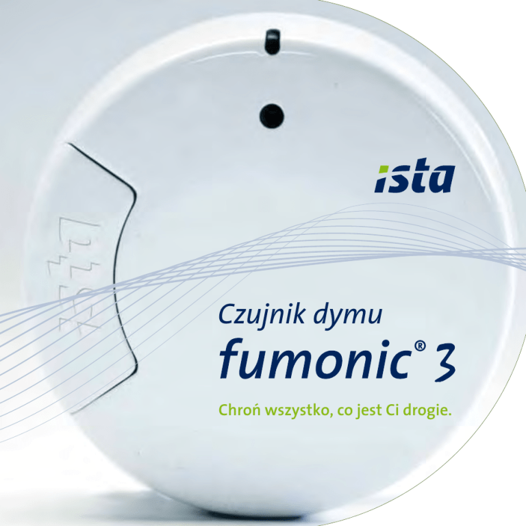 Czujnik dymu Chroń wszystko, co jest Ci drogie. Drodzy Lokatorzy, Gratulujemy inteligentnego czujnika dymu fumonic 3. Wasze dobro leży wynajmującemu na sercu! Ten czujnik dymu to bardzo sensowna inwestycja, aby chronić Twoją rodzinę i Twoje mienie. Twoja korzyść: Gdy jesteśmy u Ciebie, by dokonać odczytu innych mierników domowych, możemy jednocześnie dokonać także kontroli funkcjonowania czujnika fumonic 3. Oznacza to, że przeprowadzamy u Ciebie konserwację wszystkich urządzeń tylko jeden raz w roku. Ta konserwacja jest niezbędna dla Twojego bezpieczeństwa. (Więcej informacji na 5 stronie). Wszystkie urządzenia są oczywiście zbadane wg wytycznych Instytutu Kontroli Technicznej VdS i pracują z efektywną i zintegrowaną baterią eksploatowaną przez okres 10 lat. Inteligentna zasada bezpieczeństwa, która ostrzega dzięki efektowi Tyndalla ( zasada rozproszenia światła) tylko wtedy, jeśli istnieje niebezpieczeństwo, a także gdy śpisz i nie możesz polegać na swoim zmyśle powonienia. Niezawodnie czujny – nie podejmuj ryzyka utraty bezpieczeństwa. 2 Spokojny i betroski sen … dzięki nowemu typowi konstrukcji czujnika fumonic 3. Lampka funkcyjna umieszczona jest z boku urządzenia i nie stanowi źródła zakłócającego światło. 3 4 Rożnorodnie i łatwo możesz sam testować … funkcjonoalność czujnika dymu. Lekkim naciskiem na obudowę np. kijem szczotki możesz sprawdzić wywoływanie alarmu. Równie łatwo pozwala się to urządzenie wyciszać. Niezawodna konserwacja … dzięki doświadczonemu technikowi serwisowemu ista. Technik ten sprawdza urządzenie, przeprowadza test działania i dokumentuje wartości. 5 Wielki choć niepozorny … czujnik dymu fumonic 3 przekonuje swoją prostą formą zewnętrzną i płynnymi, równomiernymi przejściami. Dzięki temu jest on prawie niewidzoczny. 1 6 Dużo łatwiej sprawdzalne … są również nasze czujniki dymu za pomocą fal radiowych i co najważniejsze: kontrola funkcjonowania odbywa się szybko i sprawnie, gdyż przeprowadzana jest dzięki falom radiowym zdalnie. Lepsza orientacja … dzięki diodzie luminescencyjnej. Jej światło przebija przez dym i pozwala orientować się przy złej widoczności w przypadku alarmu. Twoje korzyści w skrócie. Sygnały i ich znaczenie. Sygnał Nadajnik alarmowy Czerwona LED Biała LED Wyłączony 1 ×/48 s Wyłączony Czujnik dymu w trybie pracy Nieaktywny przez 10 minut 500 ms, następnie 2 × krótko co 10 s Wyłączony Wyciszenie alarmu będzie / jest aktywne 1 sygnał dźwiękowy / 45 s 1 ×/8 s Wyłączony Bateria prawie rozładowana / End-of-Life 1 sygnał dźwiękowy / 45 s 1 ×/500 ms 1 x/500 ms Zakłócenie Konserwacja Dźwięk alarmowy 1 ×/100 ms Wyłączony Wyzwolił alarm próbny Przypadek alarmowy Wyłączony 1 ×/250 ms Wyłączony Wyzwolił alarm wstępny Włączony 3 × sekwencja alarmowa Włączony Wyzwolił alarm Nieaktywny przez 10 minut 500 ms, następnie 2 × krótko co 10 s Wyłączony Alarm pokwitowany Alarm wyłączony Eksploatacja ! Sprawdzanie działania Roczna konserwacja przeprowadzana jest wg DIN 14676. Podczas tej konserwacji urządzenie zostaje sprawdzone pod względem ewentualanych uszkodzeń i zanieczyszczeń. Następnie testowana jest aktywacja alarmu i odczytywana pamięć błędów. Śpij spokojnie – dzięki czujnikowi dymu nie rezygnujesz z ochrony! Informacje Sygnał dźwiękowy: jednorazowy krótki dźwięk ze zniżoną fonią głośności. Dźwięk alarmowy: trzykrotny krótki dźwięk o pełnej głośności. Szczegóły. Dzięki czujnikowi dymu fumonic 3 posiadasz nieodzowną ochronę! Zapoznaj się z Twoim ratownikiem życia, zasięgnij tutaj więcej informacji o zaletach czujnika fumonic 3. i i Dioda luminescencyjna Sygnalizuje optycznie … W razie prawdziwego alarmu szybko wybucha panika. Ciemność i otaczający gęsty dym utrudniają znalezienie drogi wyjścia z miejsca zagrożenia. Dioda luminescencyjna pomaga swoim światłem zachować orientację w tym chaosie. Testowanie czujnika w rzeczywistych warunkach Opatentowana ochrona! Czujnik dymu fumonic 3 posiada zintegrowany system zasysania w formie śmigła. W przypadku alarmu wyzwalany jest najpierw stopień wstępny alarmu. Ten poziom alarmowy leży poniżej 25 % zdefiniowanej wartości normatywnej. Śmigło rozpoczyna natychmiast zasysanie świeżego powietrza. Jeśli w zasysanej mieszance powietrza znajdzie się ponownie dym, następuje natychmiastowe wywzwolenie alarmu. Zasysanie powietrza jest szczególonie pomocne do szybkiego rozpoznawania pożaru w przypadku niewielkiej termiki. Dzięki takiej weryfikacji alarmu dym rozpoznawany jest szybciej, a liczba fałszywych alarmów spada prawie do 0. Uznany przez Instytutu Kontroli Technicznej VdS (VdS) i certyfikowany wg DIN EN 14604 M ocno zamontowana bateria o okresie żywotności > 10 lat W ysokorozdzielcze rozpoznawanie zanieczyszczeń D uży przycisk wielofunkcyjny do komfortowego zdalnego włączania przycisku wyciszania poprzez naciśnięcie D odatkowa biała dioda luminescencyjna do zachowania orientacji w przypadku alarmowym B ieżące procesy prognozowania stwierdzające stopień zużycia energii i zanieczyszczenia przez cały okres eksploatacji R ozpoznawanie swobodnego wlotu dymu za pomocą techniki strumieniowej S zczególnie szybkie rozpoznawanie izotropowego i optymalizowanego strumienia dymu A utomatycznie dołączający się system zasysający, celem unikania fałszywych alarmów/ sprawdzania alarmów – czy dotyczy prawdziwego alarmu? P amięć błędów do odczytywania danych i Bateria Jak ten czas szybko mija … Także eksploatacja wysokojakościowych, długoterminowych baterii litowych dobiega kiedyś końca. Aby uniknąć awarii czujnika dymu dysponuje fumonic 3 zintegrowanym systemem zarządzania baterią, który za pomocą sygnału wskazuje jej stan naładowania. Podczas sprawadzania działania kontrolujemy także stan naładowania baterii, dzięki czemu rozpoznajemy słabą bate