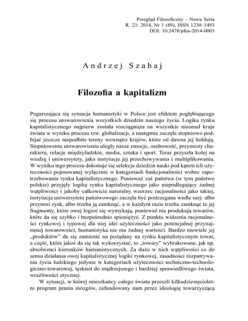 Filozofia a kapitalizm - Przegląd Filozoficzny. Nowa Seria