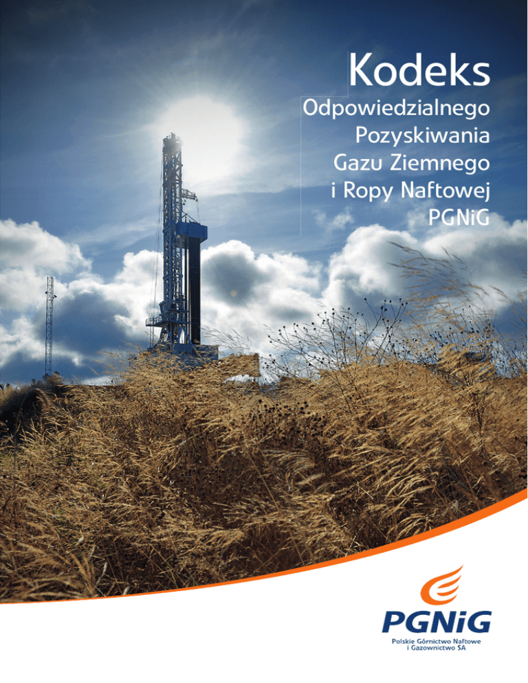 Kodeks Odpowiedzialnego Pozyskiwania Gazu Ziemnego i Ropy Naftowej PGNiG Kodeks Odpowiedzialnego Pozyskiwania Gazu Ziemnego i Ropy Naftowej Polskiego Górnictwa Naftowego i Gazownictwa SA dotyczy kształtowania relacji ze społecznościami lokalnymi – m i e s z k a ń c a m i t e r e n ó w, n a k t ó r y c h p o d e j m u j e m y l u b p l a n u j e m y podjąć działania poszukiwawcze i wydobywcze. Budowanie dobrych relacji ze społecznościami lokalnymi i dbałość o środowisko naturalne to fundamenty naszej Strategii Zrównoważonego Rozwoju i Odpowiedzialnego Biznesu. Misją PGNiG jest zapewnienie niezawodnych i bezpiecznych dostaw czystej i przyjaznej dla środowiska naturalnego energii – gazu i ropy ze źródeł konwencjonalnych i niekonwencjonalnych – z wykorzystaniem rozwiązań konkurencyjnych oraz innowacyjnych. Jesteśmy wierni naszej tradycji i dumni z zaufania, którym obdarzają nas klienci, ale pozostajemy również otwarci na nowe wyzwania i zmiany. Odpowiedzialność Naszą działalność w zakresie pozyskiwania gazu ziemnego chcemy prowadzić tak, aby minimalizować wynikające z niej wszelkie ewentualne negatywne efekty a maksymalizować korzyści dla i n t e r e s a r i u s z y. Z a s a d a t a j e s t i s t o t n y m k r y t e r i u m p o d e j m o w a n i a decyzji i działań biznesowych. Działając w interesie naszych akcjonariuszy, klientów i pracowników chcemy być wiarygodnym i przejrzystym partnerem, realizującym rozwój i wzrost wartości firmy w zgodzie z zasadami zrównoważonego rozwoju. Zależy nam na harmonijnym rozwoju z korzyścią nie tylko dla naszej firmy, ale także jej otoczenia naturalnego i społecznego. Naszą działalność gospodarczą prowadzimy w zgodzie z zapisami formalnie przyjętego Kodeksu Etyki PGNiG SA. Dlatego w procesie kształtowania relacji ze społecznościami lokalnymi kierujemy się pełną zgodnością z przepisami prawa, zasadami dobrej i wzajemnie korzystnej współpracy, przejrzystości informacyjnej i zaangażowania społecznego. Podstawą realizacji naszej misji w praktyce jest przestrzeganie kluczowych wartości: odpowiedzialności, wiarygodności, partnerstwa i jakości. Nasze wartości znajdują odzwierciedlenie również w szczegółowych standardach etycznych w zakresie pozyskiwania gazu ziemnego i ropy naftowej na wszystkich etapach działania. Wpływ na środowisko staramy się równoważyć poprzez działania na rzecz jego ochrony, zachowanie bioróżnorodności, a w szczególności przywrócenie terenu do stanu sprzed naszej działalności. Spełniamy wszelkie wymagania prawne, począwszy od przeprowadzania oceny oddziaływania na środowisko, pozyskania decyzji środowiskowych, wszelkich pozwoleń w tym m.in. dotyczących gospodarki odpadami, gospodarki wodno – ściekowej, emisji do powietrza, emisji hałasu, substancji i mieszanin stwarzających zagrożenie dla środowiska i innych. Prowadzimy badania i monitoring wybranych elementów środowiska, potencjalnie narażonych na oddziaływanie naszych prac (gleby, wody powierzchniowe i podziemne, klimat akustyczny, powietrze, przyrodnicze obiekty chronione). Pragniemy aktywnie uczestniczyć w życiu społecznym i kulturalnym, szczególnie w inicjatywach podejmowanych przez lokalne społeczności. Wiarygodność Przykłady zachowań: Ochrona środowiska Podczas prowadzenia badań sejsmicznych ściśle przestrzegamy warunków, wymogów i obowiązków wskazanych przez Regionalne Dyrekcje Ochrony Środowiska w decyzjach środowiskowych, dotyczących m.in. możliwości i terminów podejmowania prac np. w rejonach objętych ochroną w ramach programu Natura 2000, czy zasad Wyboru lokalizacji wierceń dokonujemy po rozpoznaniu uwarunkowań środowiskowych, przyrodniczych i społecznych, tak by wyeliminować konflikty przestrzenne i uczynić te prace możliwie najmniej uciążliwymi. W procesie wiercenia i wydobycia podejmujemy wszelkie działania mające na celu wyeliminowanie lub ograniczenie do minimum wpływu na środowisko przyrodnicze i społeczne, m.in. prowadząc po zakończeniu prac rekultywację terenów, na których prowadziliśmy działalność. Zaangażowanie społeczne Staramy się zachęcać przedstawicieli administracji lokalnej, organizacji pozarządowych oraz grup obywatelskich do współdziałania z nami w celu prowadzenia rzetelnej, wszechstronnej, transparentnej komunikacji w zakresie W naszych jednostkach wdrażamy zintegrowane systemy zarządzania (np. Systemy Zarządzania Środowiskowego) certyfikowane i audytowane przez niezależne podmioty, a także system HSE (Health, Safety, Environment). dotyczących ograniczeń w zakresie stosowania metod badawczych i/lub sprzętu. Na bieżąco aktualizujemy katalog procedur i dobrych praktyk stosowanych w celu zapobiegania negatywnym skutkom prowadzonych działań. Dążymy do tego, aby rzetelnie, w sposób maksymalnie zrozumiały informować interesariuszy o naszych zamierzeniach i metodach Rozumiemy znaczenie wpływu poszukiwania i wydobycia gazu na różne aspekty życia społeczno-gospodarczego danego regionu, zależy nam, by był on jak najbardziej pozytywny. Przykłady zachowań: procesów związanych z pozyskiwaniem gazu ziemnego. Wspólna wartość ekonomiczna Wspieramy ważne dla społeczności lokalnych inicjatywy, zarówno infrastrukturalne, jak i edukacyjne, kulturalne czy społeczne. Poszukujemy możliwości zatrudniania przedstawicieli społeczności lokalnych, a także rozwoju lokalnych usług oraz innych form przedsiębiorczości. Poszukujemy rozwiązań rynkowych, które są ekonomicznie wartościowe, a jednocześnie przyjazne ekologicznie i społecznie. działania oraz o wszystkich aspektach aktywności biznesowej firmy, które ich bezpośrednio dotyczą. Działamy przejrzyście, nie unikamy wyzwań, a problemy staramy się rozwiązywać w sposób konstruktywny. Dotrzymujemy słowa – przestrzegamy zobowiązań, informujemy naszych interesariuszy o ewentualnych zmianach za