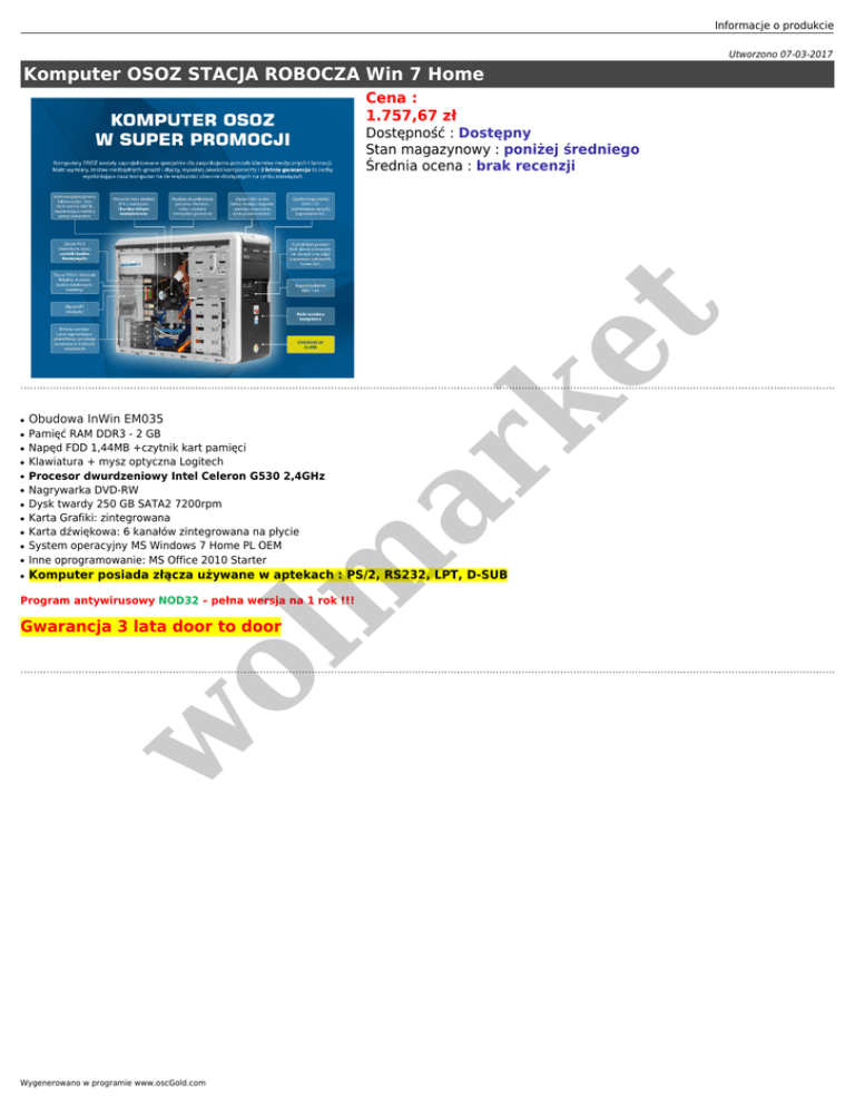Komputer OSOZ SERWER Win 7 Pro/XP Pro