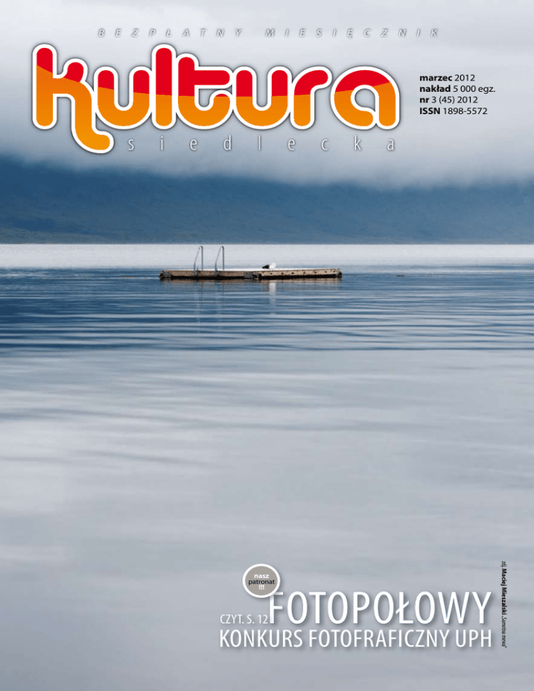 b e z p ł a t n y m i e s i ę c z n i k marzec 2012 nakład 5 000 egz. nr 3 (45) 2012 ISSN 1898-5572 fotopołowy czyt. s. 12 konkurs fotofraficzny uph zdj. Maciej Mieszalski "Samotna mewa" nasz patronat !!! 2 www.kulturasiedlecka.pl marzec2012 na dobry początek Na dobry początek same sukcesy. Jako redakcja i stowarzyszenie tutajteraz, przy nieocenionej współpracy wielu wolontariuszy, firm i instytucji zapoczątkowaliśmy cykl spotkań przy grach planszowych. Uczestnicy przybyli licznie. Inauguracyjny GAMEWOOD zorganizowaliśmy z rozmachem, kontynuację zaplanowaliśmy nieco kameralnie, ale to nie znaczy, że wrażeń będzie mniej. Zatem do zobaczenia przy kolejnych spotkaniach z grami planszowymi. Co dalej? Piszemy o imprezach, najczęściej są to zapowiedzi, rzadziej relacje. Niestety, wciąż za mało stron liczy„Kultura”, abyśmy mogli napisać o wszystkim. Zapraszam więc na naszą stronę internetową, która nieco pojemniejsza zawiera więcej tekstów i zdjęć. Na koniec, z ogromną przyjemnością, składam życzenia szczęścia i pomyślności wszystkim kobietom. Niech Wam się wiedzie, świat będzie Wam przychylny, a każdy dzień wspaniały, nie tylko ten jeden – 8 marca. Agnieszka Janiszewska Redaktorka Naczelna: Agnieszka Janiszewska, tel. 608 657 713, [email protected] Redaktorka Prowadząca: Małgorzata Góral, [email protected] Adres: Siedlce, ul. Pułaskiego 11 www.kulturasiedlecka.pl e-mail: [email protected] Kulturę tworzą: Agnieszka Janiszewska, Małgorzata Góral, Bartosz Szumowski, Izabela Kuniewicz, Kamil Musiejczuk, Przemek Iwanek, Anna Zadrożna, Klaudia Prus, Małgorzata Głuszczak, Joanna Zawadzka, Julia Kukawska Dział reklamy: Izabela Kuniewicz, tel. 783 678 322 Skład: Maciej Tołwiński, Panoramix, tel. 692 543 617 Druk: Iwonex, Siedlce, Ujrzanów 289 Wydawca: stowarzyszenie tutajteraz Dyżury redakcji: każdy wtorek: 15.00 –17.00, każdy czwartek: 11.00 –14.00 Chopin w tańcu Miłośnicy tańca oraz tzw. muzyki klasycznej już wkrótce będą mogli zobaczyć i posłuchać tego połączenia w przedstawieniu ,,Choreografia fortepianu – Chopin w tańcu”. Jest to spektakl przygotowany przez Izę Orzełowską w ramach stypendium Prezydenta Miasta Siedlce. Był to jej debiut w roli choreografa i – jak będzie można zobaczyć – poradziła sobie doskonale. Premiera spektaklu odbyła się w 20 marca 2011 roku na Scenie Teatralnej CKiS. Sztuka inspirowana jest twórczością Fryderyka Chopina. Muzyka kompozytora jest zarówno tłem muzycznym etiud Wiosna, wiosna tanecznych, jak również stanowi integralną cześć spektaklu. Artystami występującymi na scenie są tancerze Teatru Tańca Caro Dance. Iza Kuniewicz Iza Orzełowska Caro Dance Harfa i skrzypce w duecie Zima ma się ku końcowi, wielkimi krokami zbliża się Pierwszy Dzień Wiosny, powszechnie nazywany dniem wagarowicza. W związku z tym postanowiliśmy zapytać zastępcę dyrektora Miejskiego Ośrodka Kultury Krzysztofa Borutę oraz właścicielkę Restauracji Panderosa p. Ingę Myszka o to, czy wagary nie są im obce. Krzysztof Boruta: – Będąc uczniem, prawie nie uciekałem z lekcji. W podstawówce zdarzyło mi się raz uciec z okazji dnia wagarowicza. Byliśmy jednak bardzo zgraną klasą i jako że uciekliśmy wszyscy, konsekwencje były niewielkie. W szkole średniej nie zdarzały mi się takie przygody, ponieważ na pierwszy dzień wiosny organizowane były zawody sportowe i od topienia marzanny ważniejsza była rywalizacja. Są to miłe wspomnienia, ale zdecydowanie odradzam wszystkim uciekanie z lekcji. Inga Myszka: – Czas błogiej, słodkiej młodości sprzyjał czasem robieniu głupstw. Pamiętam taki incydent ze szkoły podstawowej, kiedy całą klasą uciekliśmy z popołudniowych zajęć lekcyjnych. Oczywiście wszystko się wydało i wylądowaliśmy na dywaniku u pani dyrektor. W domu skończyło się tygodniowym zakazem wychodzenia gdziekolwiek po lekcjach. To był dramat! W liceum, jak fundowałyśmy sobie z koleżankami wagary, to niestety zawsze wpadałam podczas tych ucieczek, np. na przejściu dla pieszych wchodziłam pod samochód swojej cioci;) Myślę, że czas życia szkolnego młodych ludzi powinien uczyć bycia w grupie, przekazywać niezbędną wiedzę, ale także pozwolić im na odrobinę szaleństwa i luzu. reklama 21 marca, godz. 19.00, CKiS Scena Teatralna Miasta Siedlce (ul. Bpa Świrskiego 31). Davide Monti „Mazovia Goes Baroque”, czyli muzyka dawna na dawnych instrumentach? Niezupełnie. Tym razem instrumenty to harfa i oryginalne, włoskie skrzypce, pochodzące z XVII wieku. Skrzypce, które w roku 1913 ówczesny francuski ambasador we Włoszech podarował komendantowi policji we Florencji, jako podziękowanie za pomoc w odnalezieniu i odzyskaniu Mona Lisy, skradzionej z Luwru dwa lata wcześniej. Wykonawcami koncertu „Mazovia Goes Baroque” będą włoski skrzypek – Davide Monti oraz irlandzka harfistka – Maria Christina Cleary, którzy razem tworzą duet Arparla. Muzycy przedstawią program prezentujący muzykę niemiecką, która powstawała na zamówienie arcybiskupa czeskiego Kromieryża. Duet czerpie inspirację z pragnienia, by mówić poprzez muzykę (włoskie „parla” oznacza mówienie). Wykorzystując delikatne i wyrafinowane dźwięki harfy, a także ekspresyjną skalę barw skrzypiec, Maria i Davide pozostają wierni historycznym praktykom wykonawczym. Davide Monti wierzy, że spotkania artystyczne są najważniejszymi okazjami do przeprowadzania muzycznych eksperymentów i dokonywania odkryć. Skrzypek prowadził kursy mistrzowskie w Japonii, Singapurze oraz Australii. Jego nagranie Czterech Pór Roku Antonia Vivaldiego (2010, Stradivarius) zyskało uznanie na całym świecie. Gra na anonimowych skrzypcach włoskich z 1733 roku, wypożyczonych mu przez rodzinę Paternostro. Druga połowa duetu, czyli Maria Christina Cleary, posiada kolekcję instrumentów, pozwalających jej na wykonywanie muzyki z różnyc