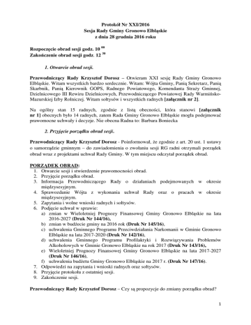 Protokół Nr XXI - BIP Urzędu Gminy Gronowo Elbląskie